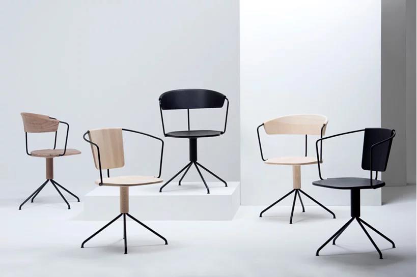我们设想了一个木椅家庭与两个不同的靠背和一个(四星)旋转基地。