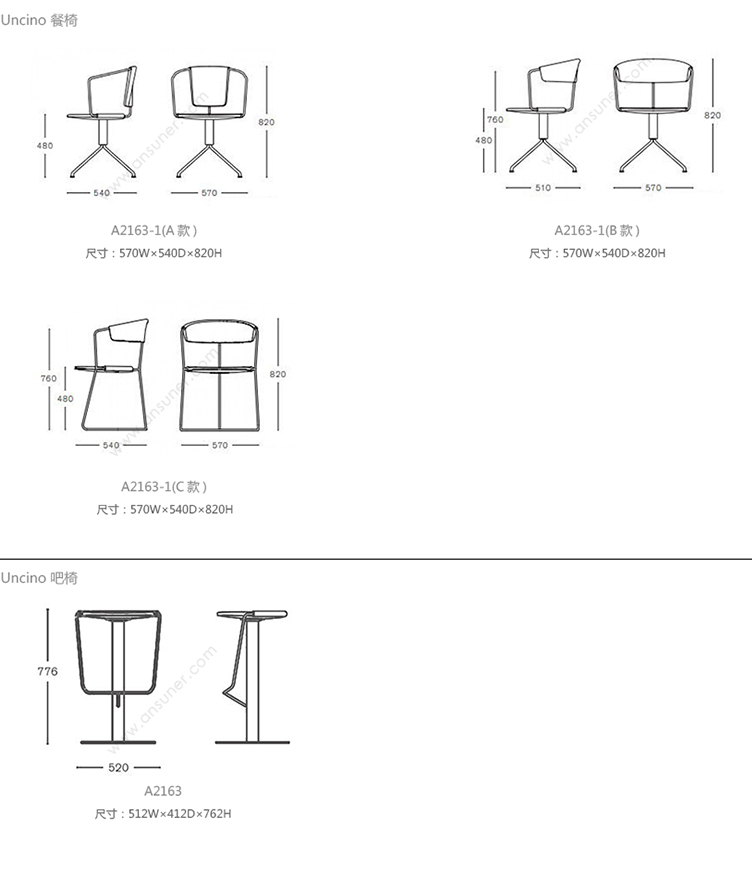 Uncino 系列尺寸/示意图