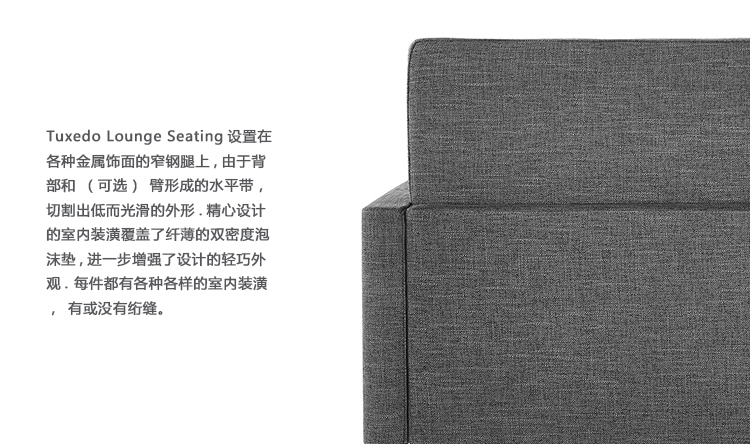 Tuxedo沙发灵活而实用,可配置适合多种空间,包括行政办公室,休闲会议区,大堂和接待区,以及起居室和住宅空间。