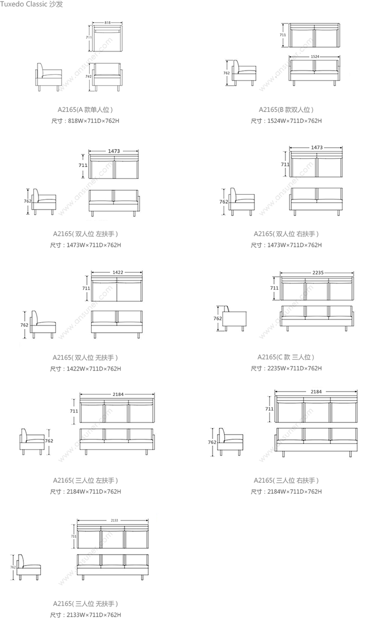Tuxedo Classic 系列尺寸/示意图