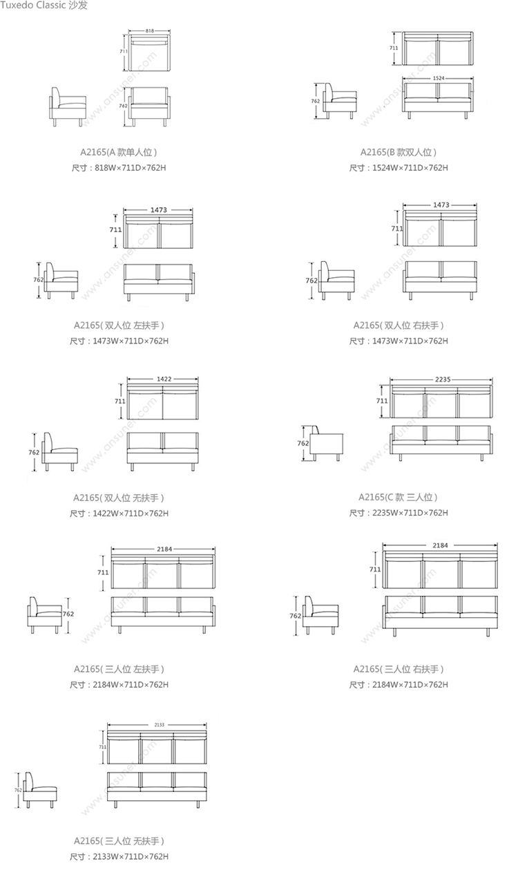 Tuxedo休闲座椅由细窄的钢腿提供支撑,金属支腿有6种饰面可选,靠背和(可选)扶手形成一条水平横线,让座椅的整个线条轮廓看起来十分低沉、流畅。超薄、双层泡沫衬垫外面包裹清新定制的装饰,让沙发看起来更加轻巧。每款装饰系列都包括有绗缝或无绗缝两种选项。