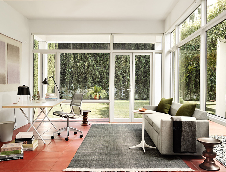BassamFellows的设计采用了完全的软垫框架,没有明显的腿部,BassamFellows的设计意图是斜面提供一个简单的靠背——一种永恒的美学,与Herman Miller的现代经典相协调。
