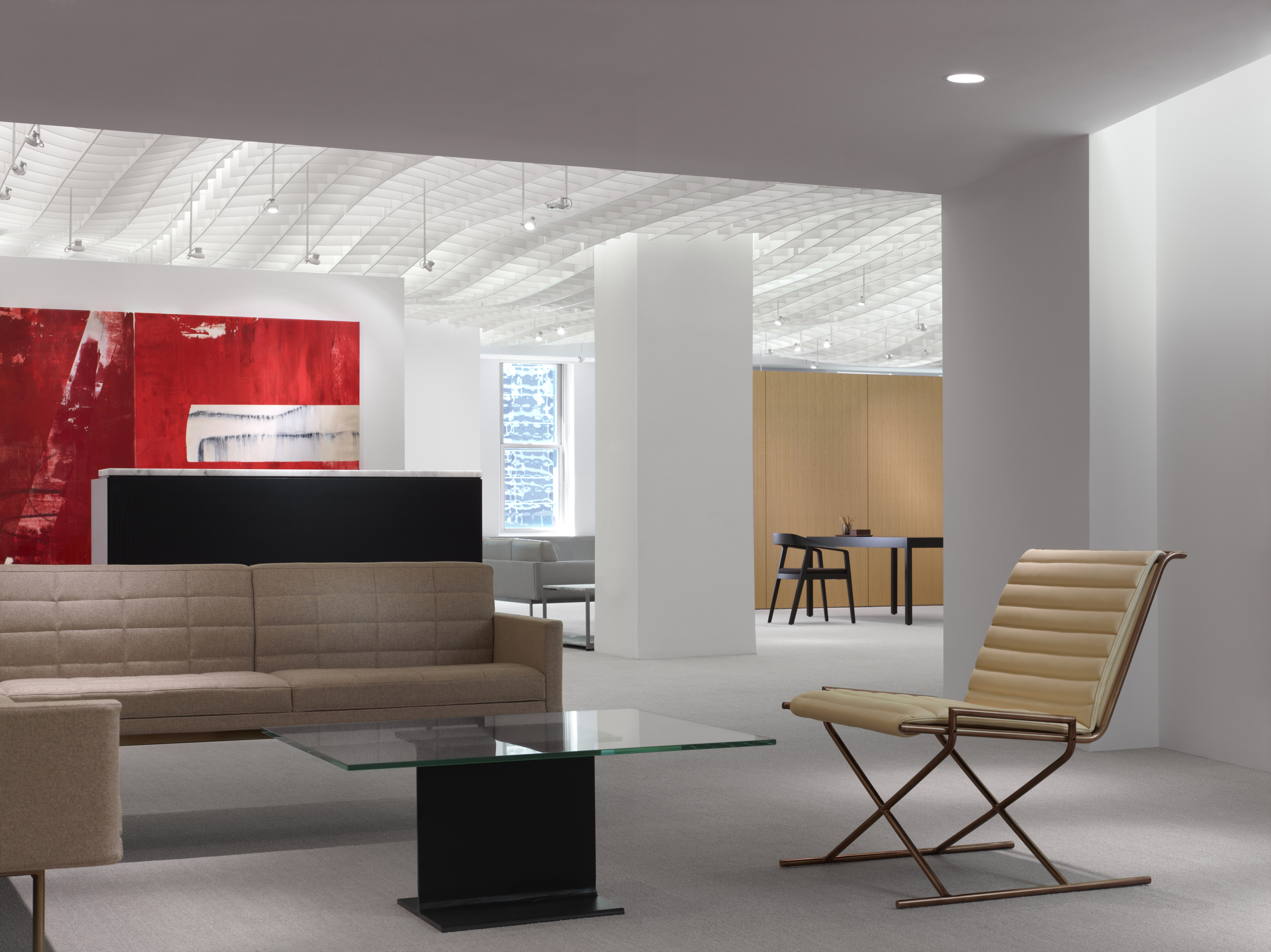 Ward Bennett Sled座椅的底座设计十分引人注意。用钢管焊接成一个X形,安装在平行的双轨之上,设计十分大胆。可选装饰有各种织物或皮革,Sled座椅座位和靠背就像一个摇篮,将就坐者环绕起来。独特的设计和惬意的舒适度是让Sled座椅从1966年流行至今的两大原因。