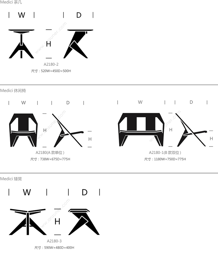 Medici 系列尺寸/示意图
