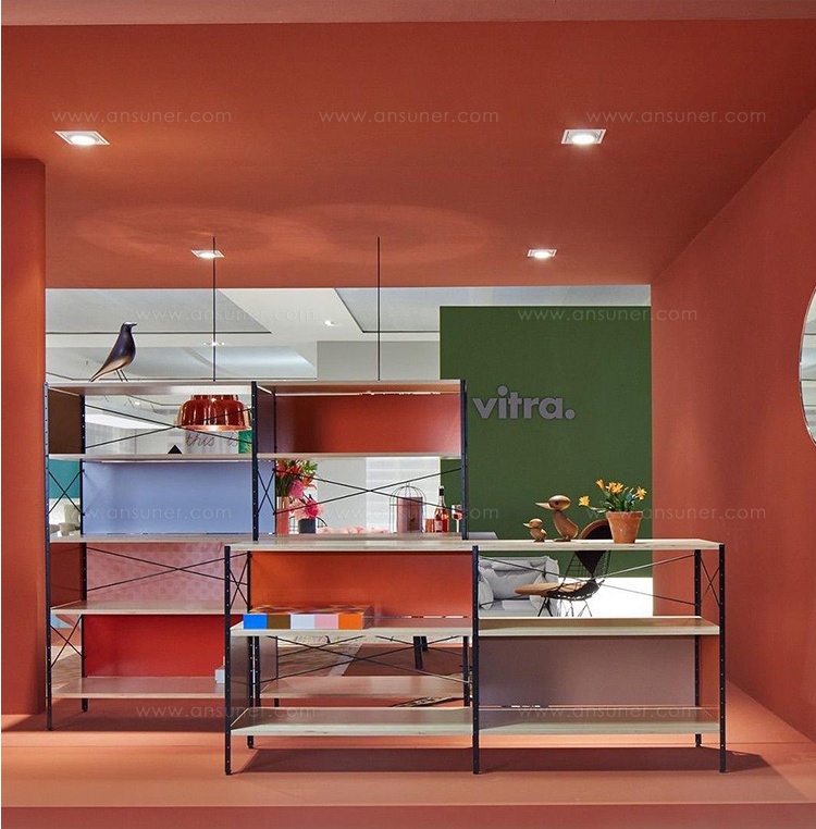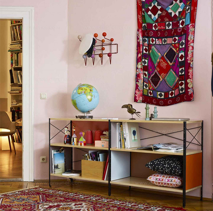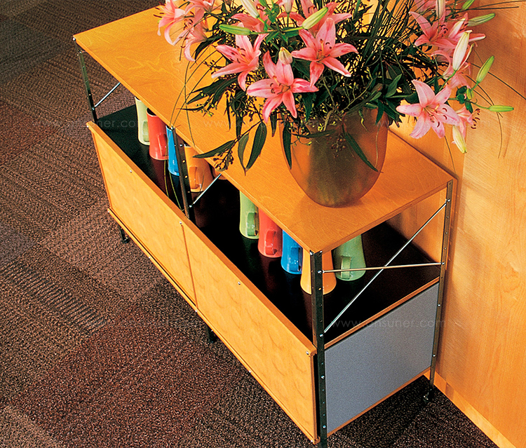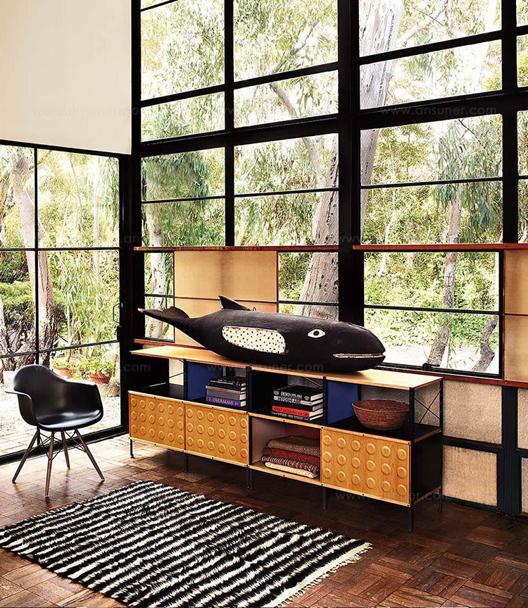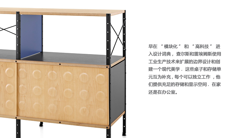 他们在底特律艺术学院为1949年的一次展览所做的工作,Eames Desk Units和Storage Units展示了“机器美学”和日本风格对当时的Eameses有重要影响。早在“模块化”和“高科技”进入语言之前,Charles和Ray Eames就以多种方式将标准化部分结合起来,创造出适合家庭和办公室各种用途的实用家具。