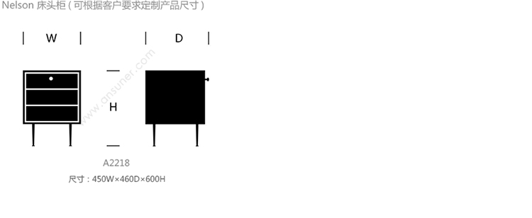 Nelson 床头柜 系列尺寸/示意图