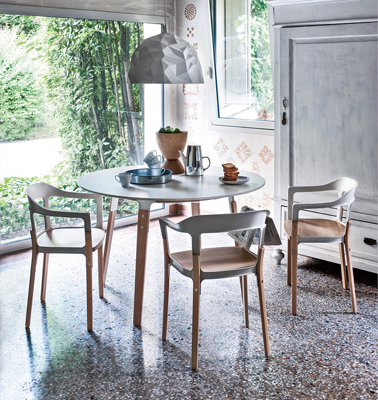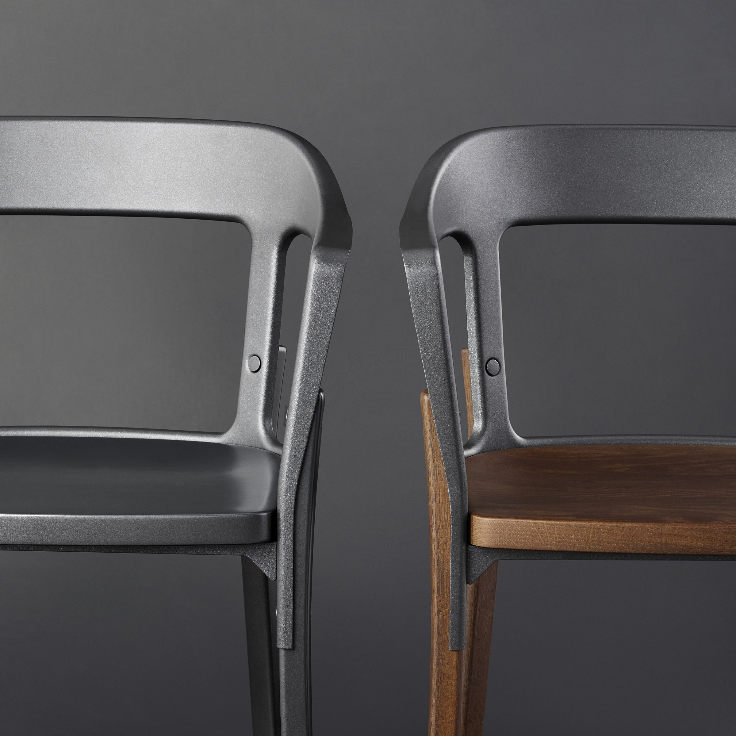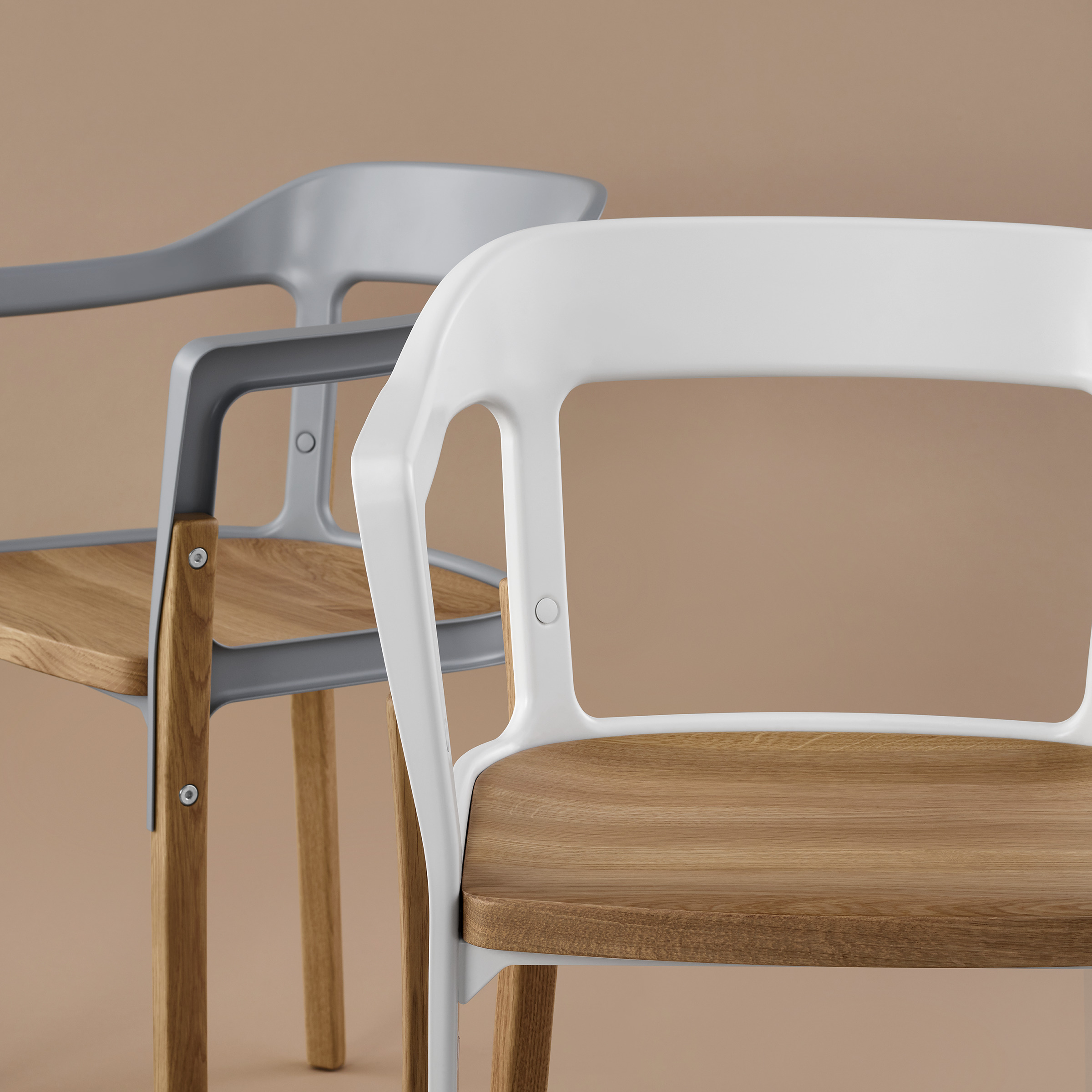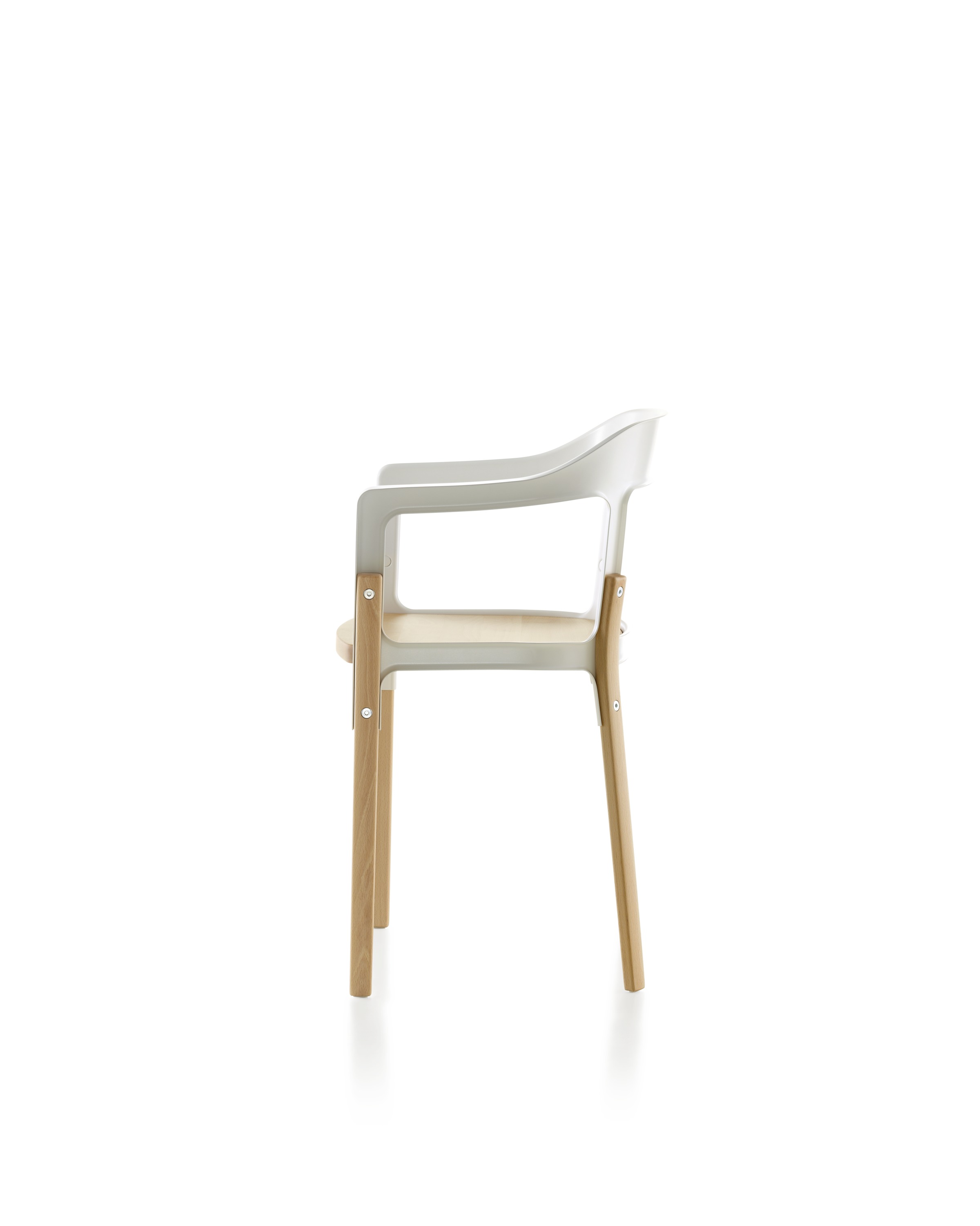 Ronan和Erwan Bouroullec称他们的Steelwood椅子“稳定、民主、普遍、持久”。“设计巧妙地结合了两种传统材料,木材和钢材(涂漆和镀锌版本)来传达温暖和力量。”这种组合有助于休闲或优雅的设置和选择的软垫座椅提供额外的舒适。