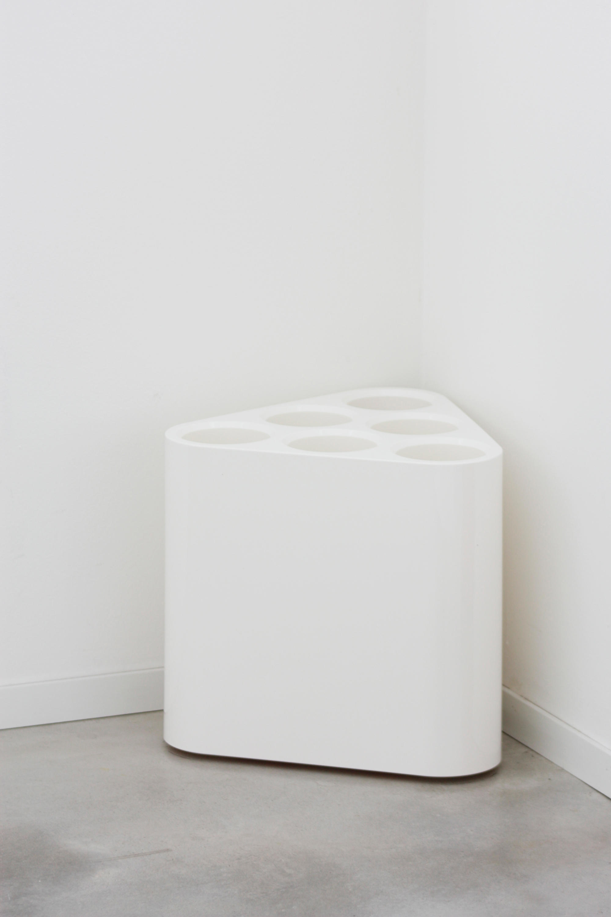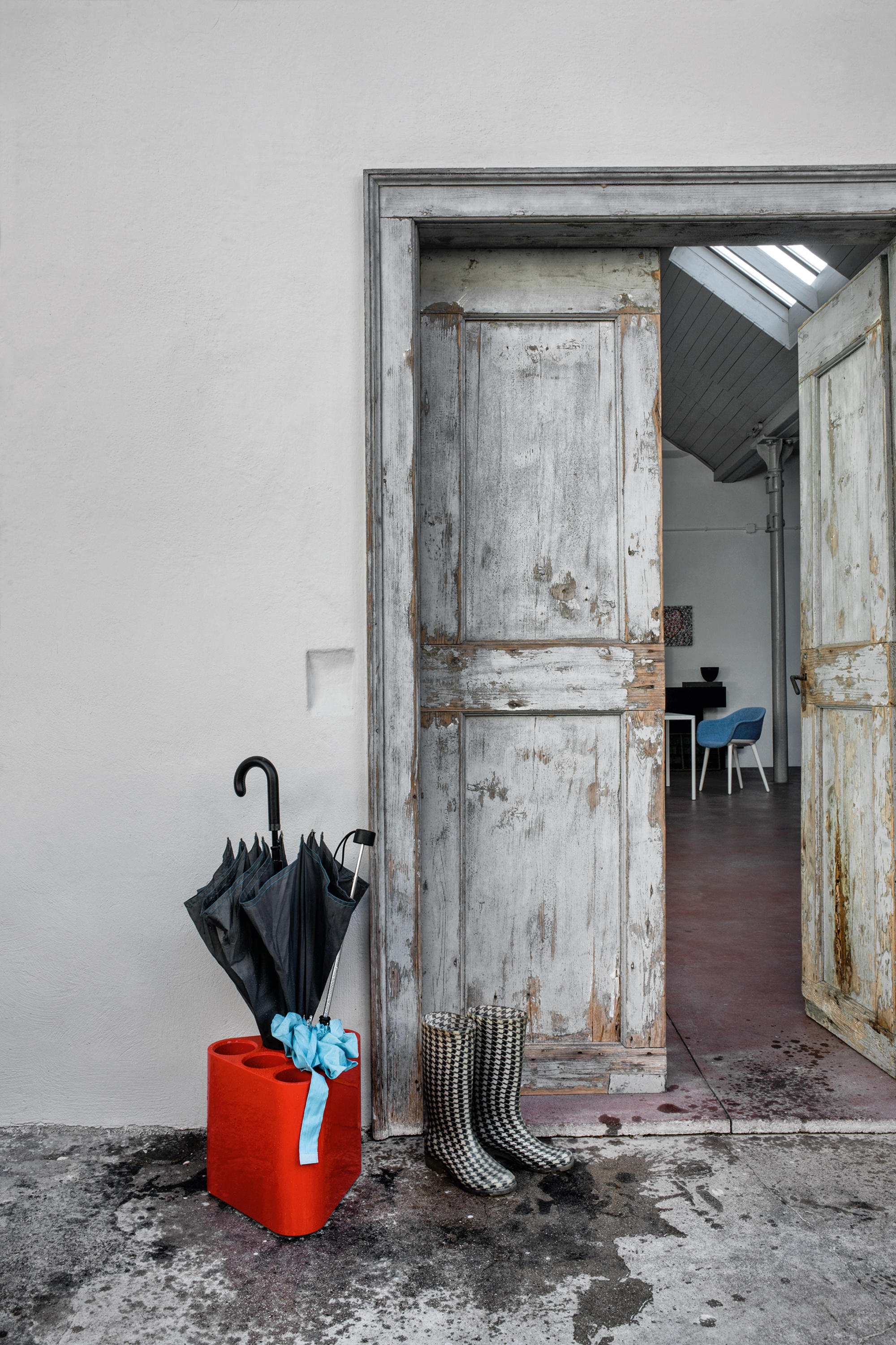 Magis的伞架允许长而短的雨伞在雨中冲入时容易弹出并存放。 其紧凑的尺寸和三角形的形状使其易于放置在入口通道或走廊中。 有橙色,白色和黑色可供选择。