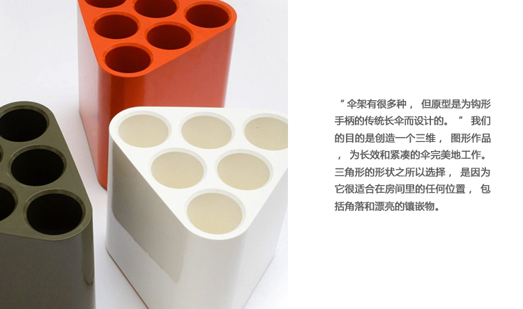 凭借其Umbrella Stand,东伦敦设计师Edward Barber和Jay Osgerby巧妙地诠释了入口标准。 正如Jay Osgerby评论的那样,一系列简单的孔和低调的设计使得“任何尺寸的卷起或展开的雨伞都能完全突然出现。”然而,奇怪的是并不以牺牲功能为代价:围绕着 每个开口的顶部都有任何雨水流入雨伞,而不是在地板上。