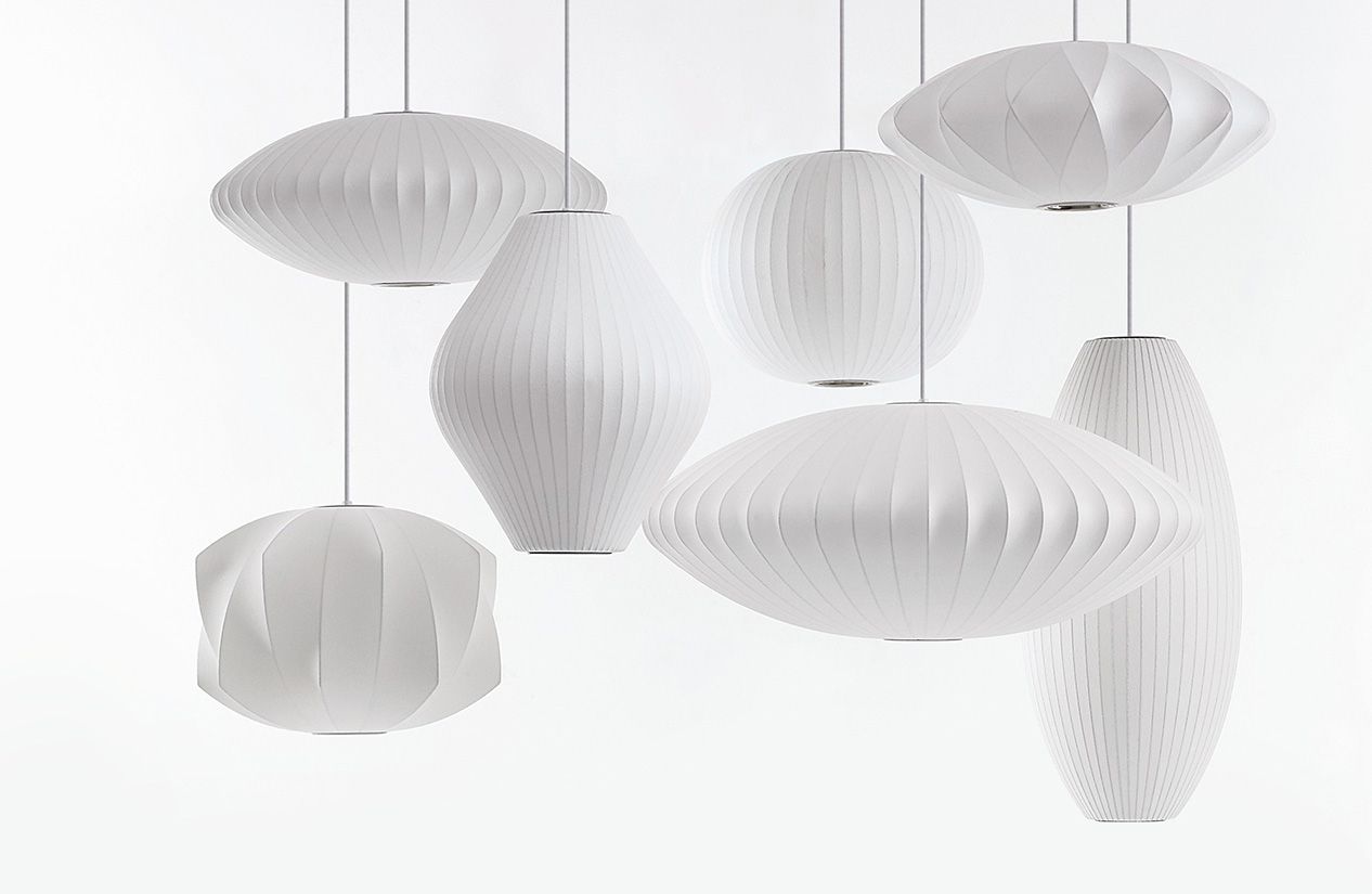 Nelson气泡灯是一组形形色色、具有球状轮廓的灯具,能散发出均匀柔和的光线。Nelson Saucer Bubble Pendant杯托型气泡吊灯宽大的形状及其不锈钢的下层结构能给人带来柔和流动的线条感,造型可爱,光线宜人,适合任何室内风格。本款吊灯有小号、中号、大号和加大号几种不同规格。George Nelson于1952年设计了这个系列的灯具,当时他偶然发现了一款瑞典吊灯,打算买回去放到自己办公室里使用。但那款吊灯高昂的价格让他犹豫了,却让他萌生出自己设计一个气泡灯系列的念头来。