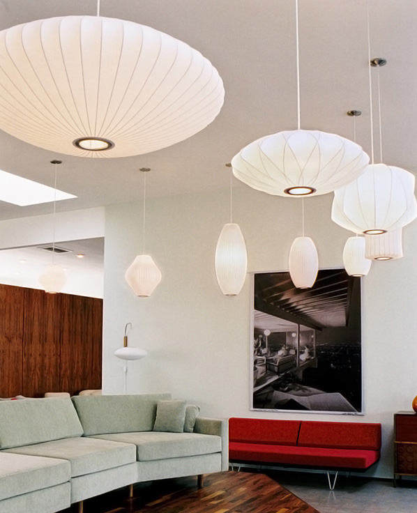 Nelson气泡灯造型多变,别具一格,其各种球状外形能为任何类型的室内设计增添一丝趣味。Nelson Ball Crisscross Bubble Pendant球形十字气泡吊灯浑圆的灯罩与其下层结构中对分的图案组合成一个非常有意思的轮廓。1952年,Nelson看到一组配有精心制作的丝质灯罩的瑞典吊灯,由此触发了自己的灵感。然而,吊灯的价格实在让人望而却步。Nelson决定设计制作自己的灯组,并且想出了用透明塑材代替真丝的创新工艺,使其能拥有更实惠的价格。