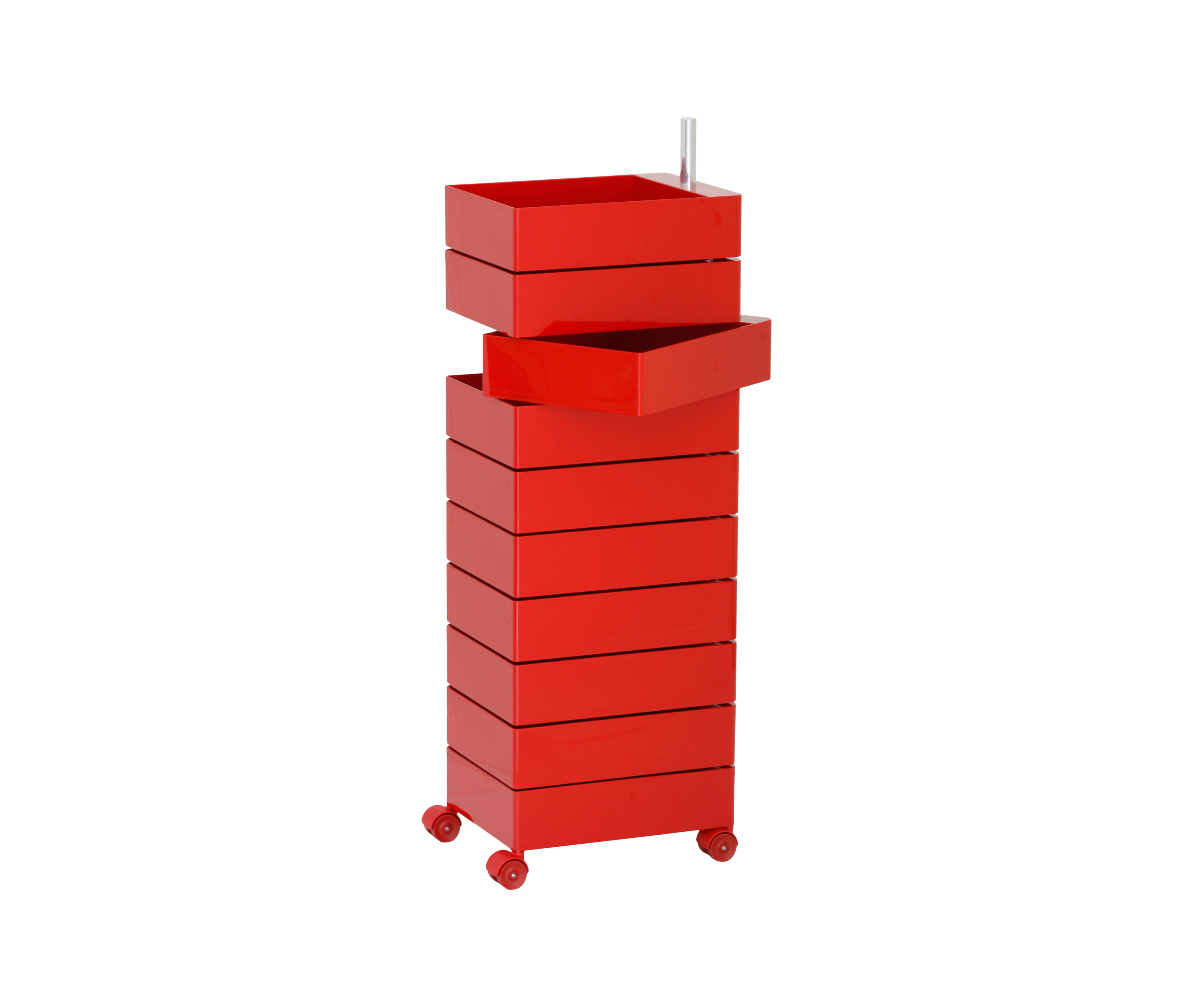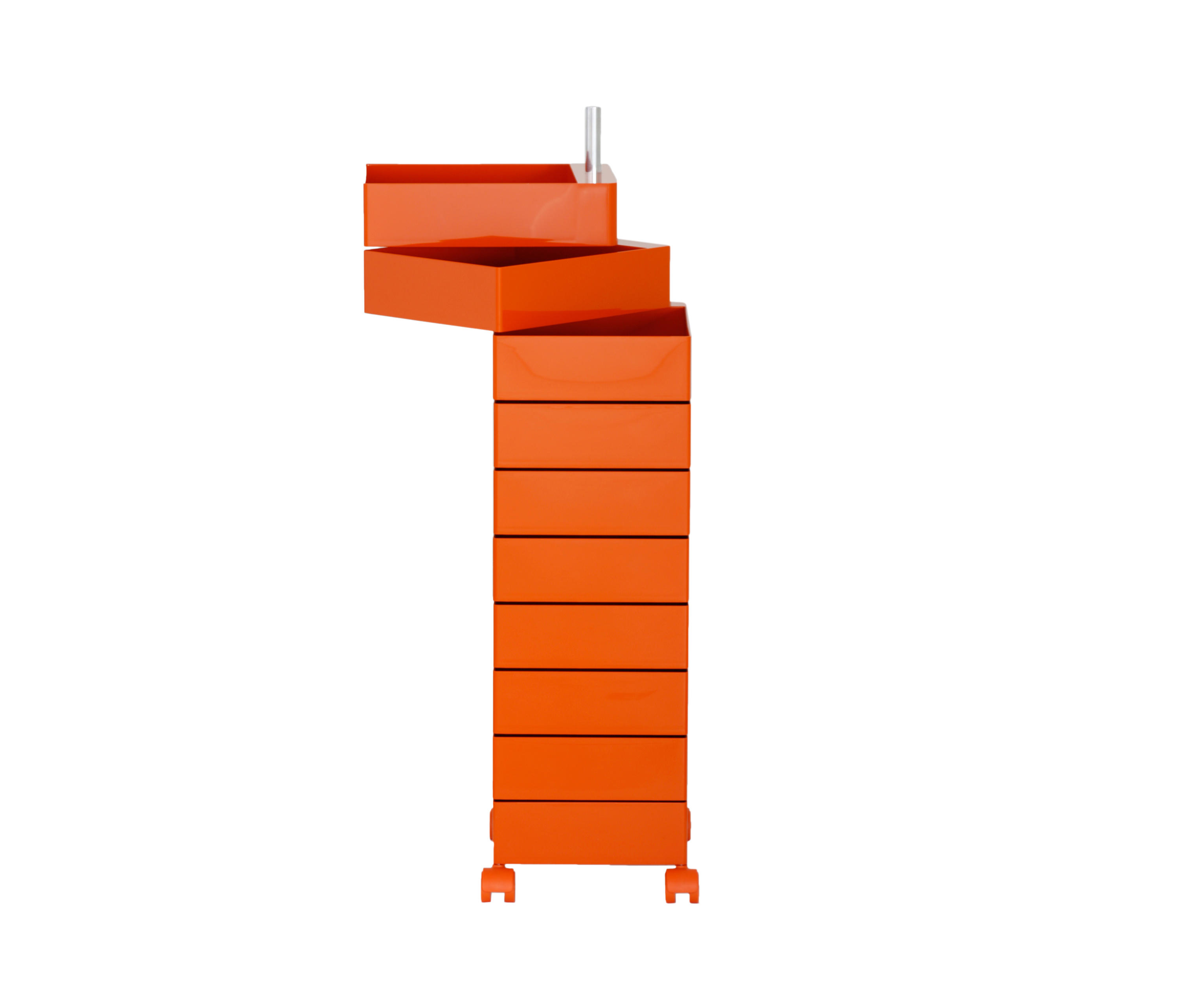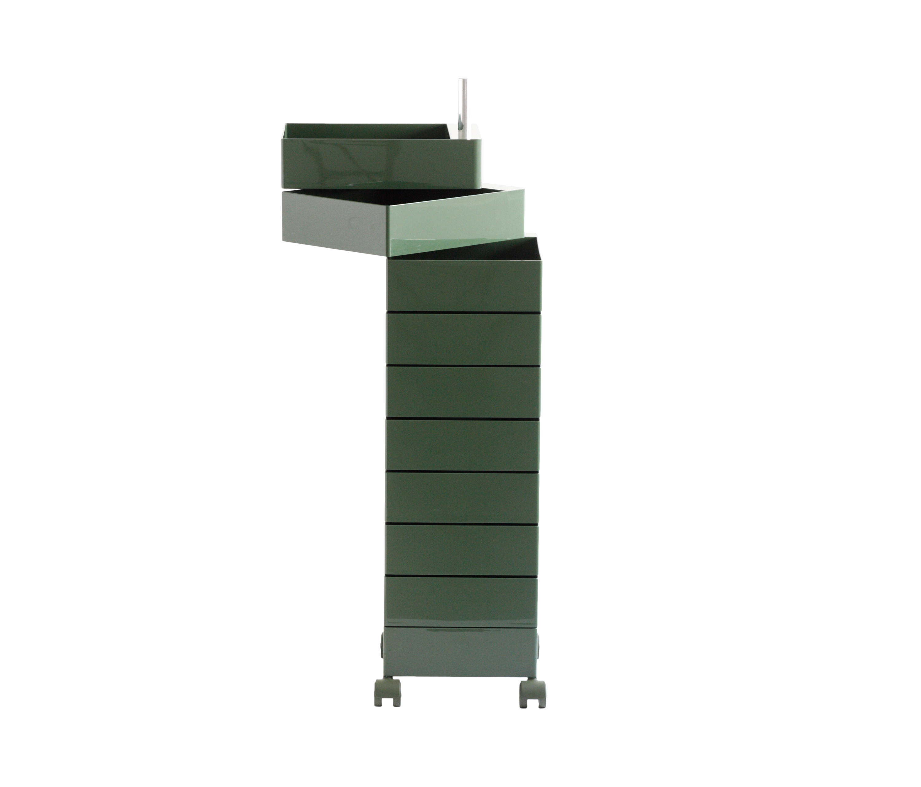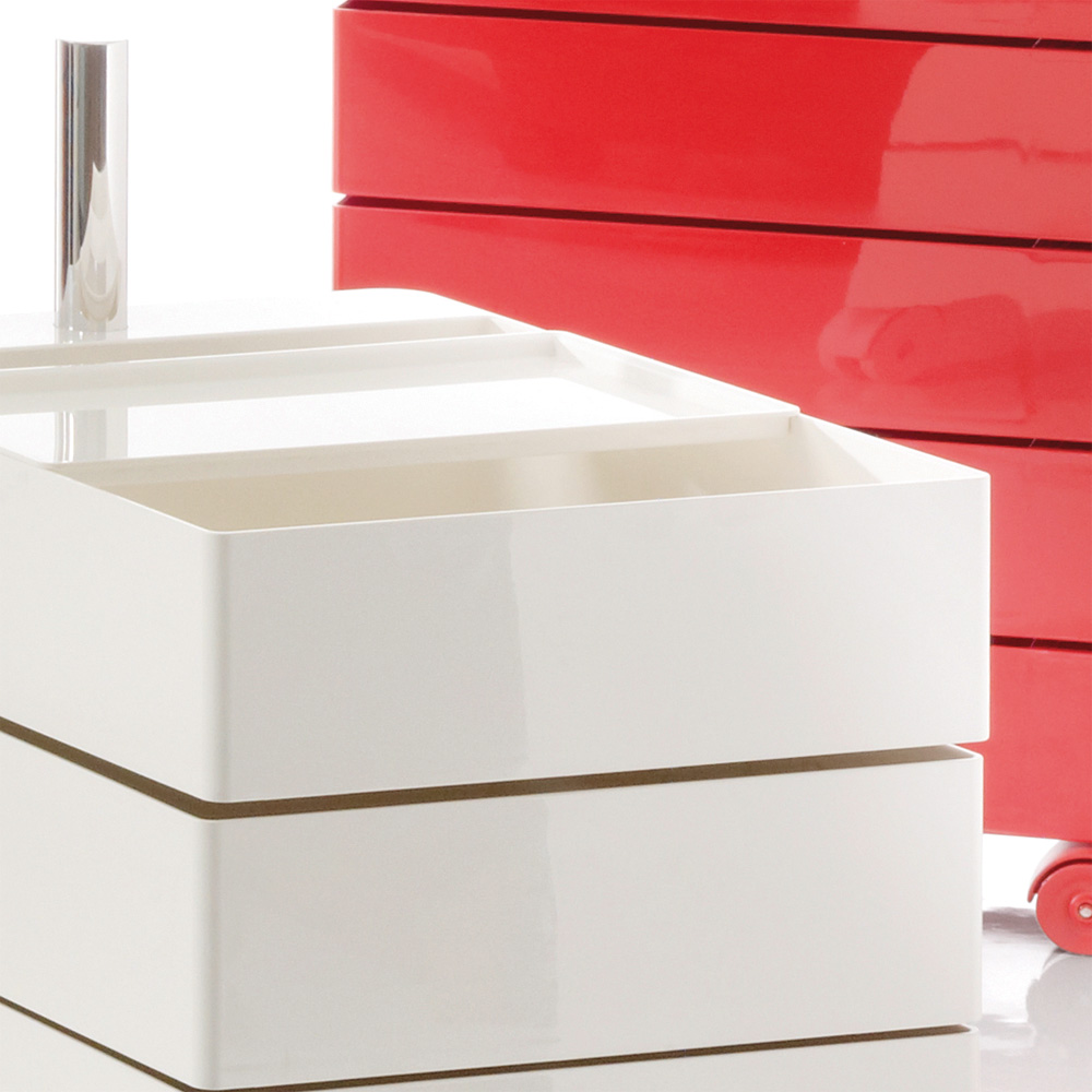 Konstantin Grcic的360°Magis集装箱是一个非常简单且高度移动的存储解决方案,它跟上当代工作和生活空间的步伐。容器的抽屉单元旋转到360度打开,脚轮允许方便的移动性。