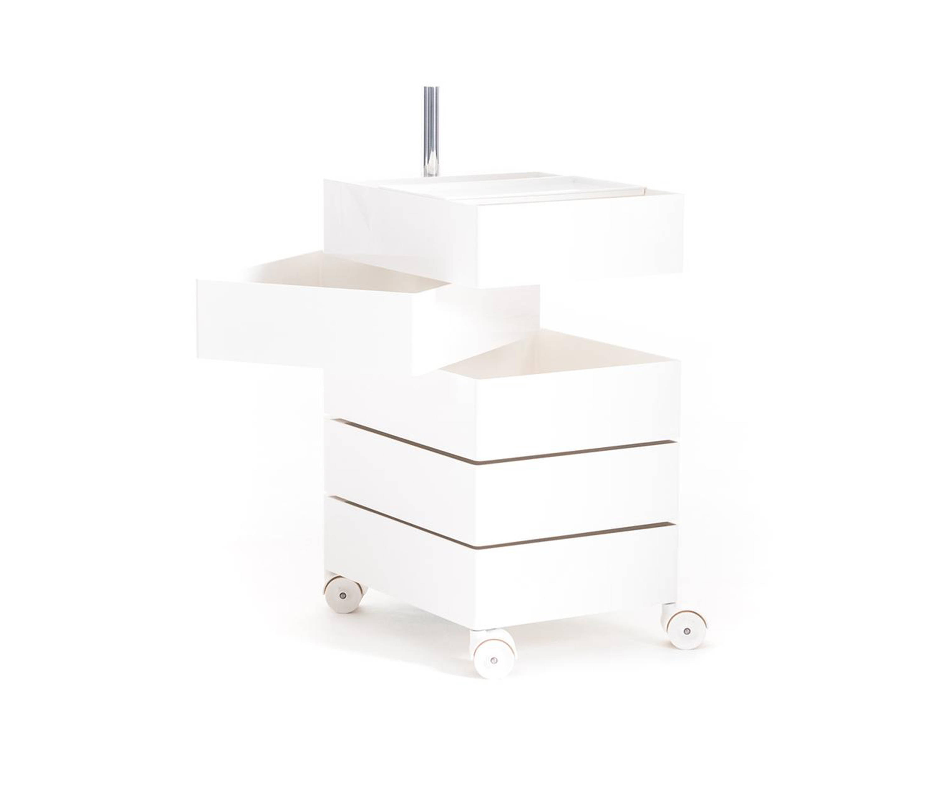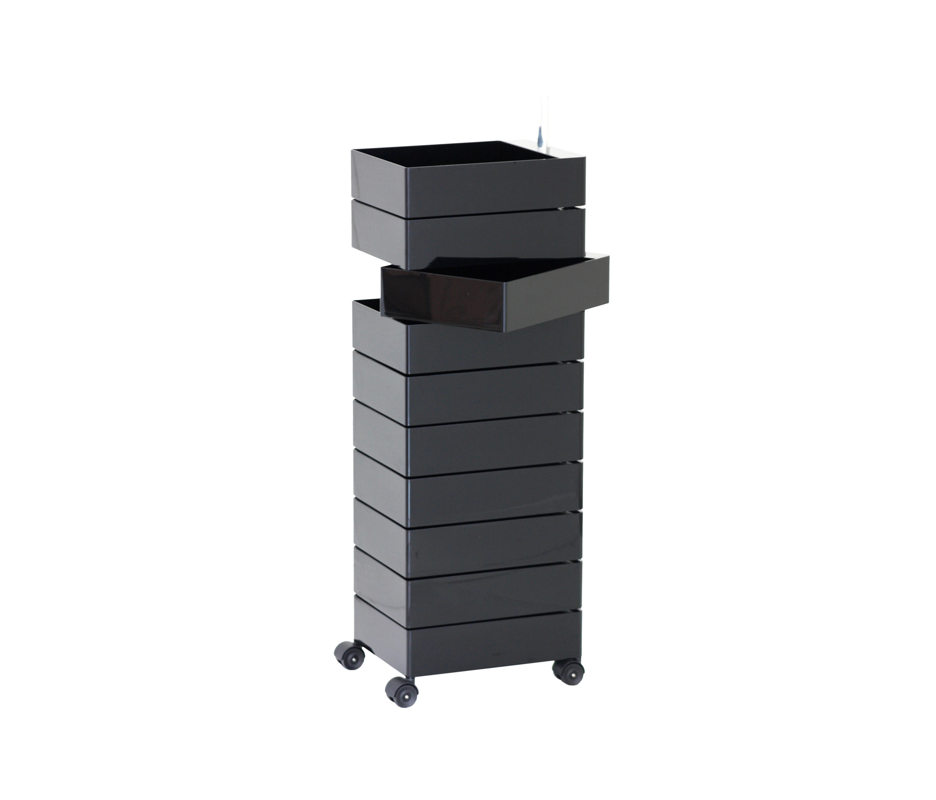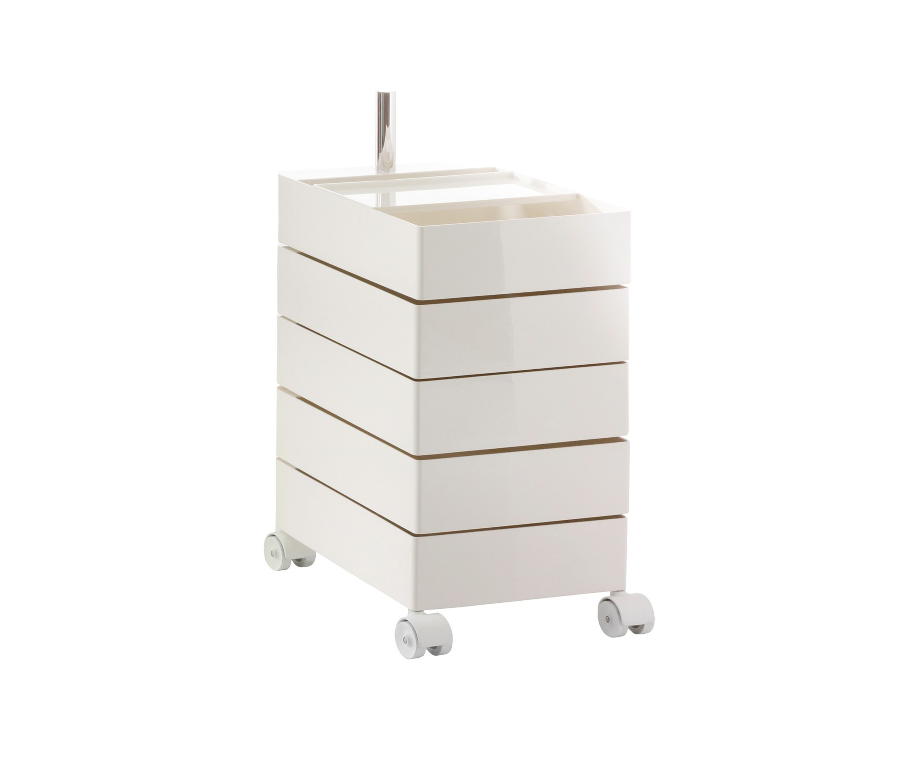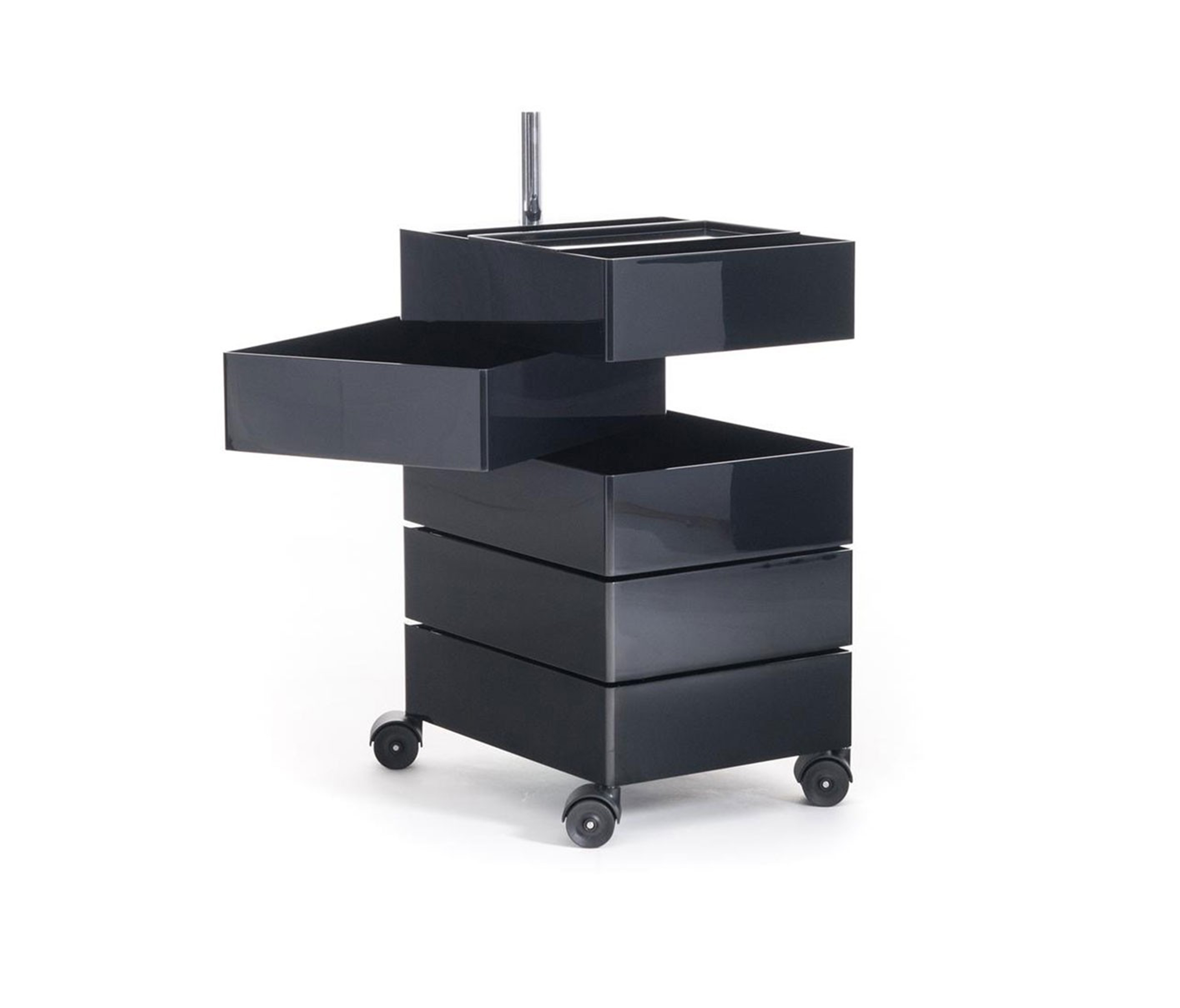 Konstantin Grcic的360°Magis集装箱是一个非常简单且高度移动的存储解决方案,它跟上当代工作和生活空间的步伐。容器的抽屉单元旋转到360度打开,脚轮允许方便的移动性。