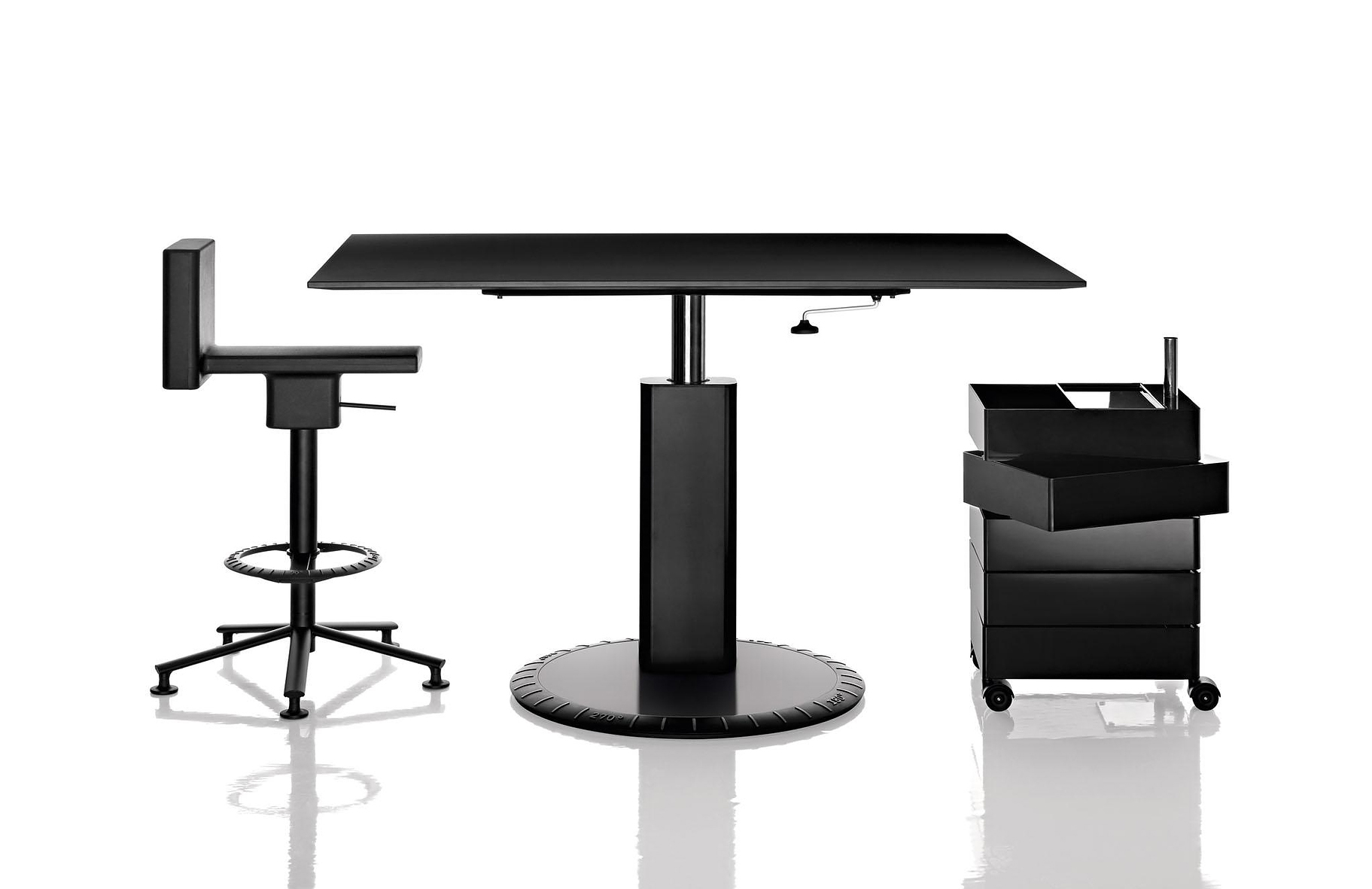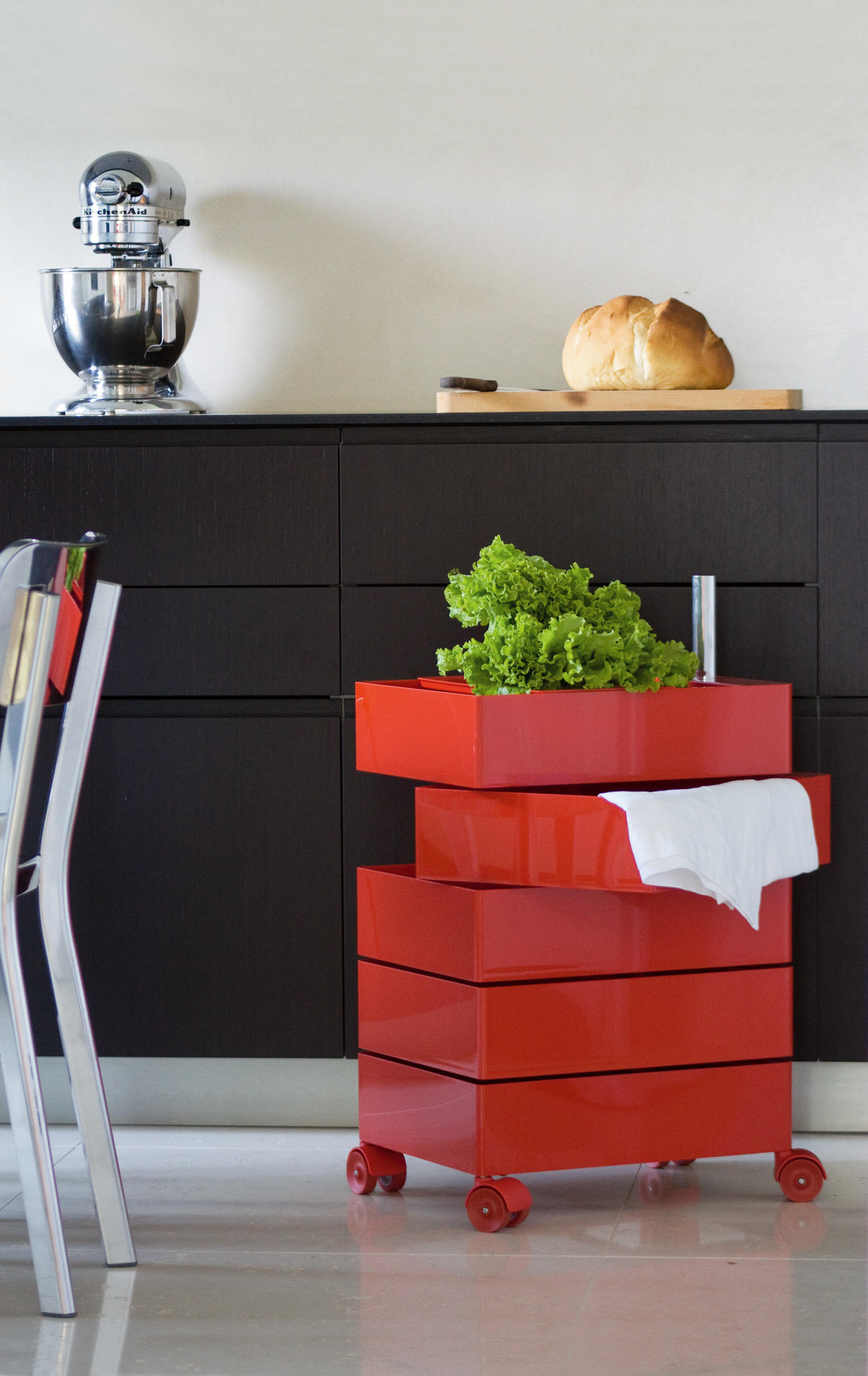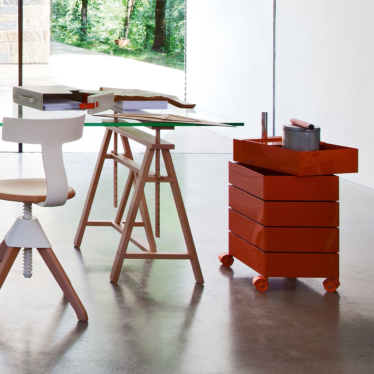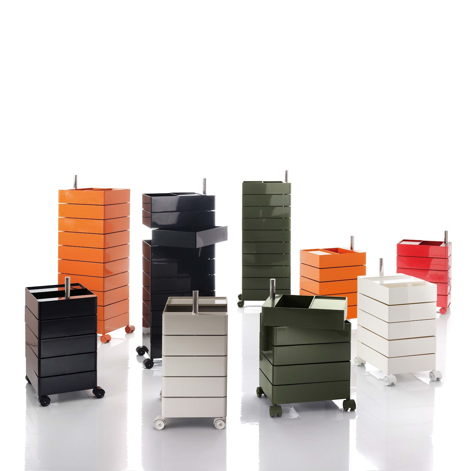 Konstantin Grcic的360°Magis集装箱是一个非常简单且高度移动的存储解决方案,它跟上当代工作和生活空间的步伐。容器的抽屉单元旋转到360度打开,脚轮允许方便的移动性。