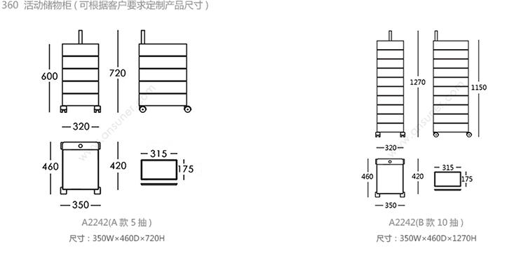 360 活动储物柜 系列尺寸/示意图