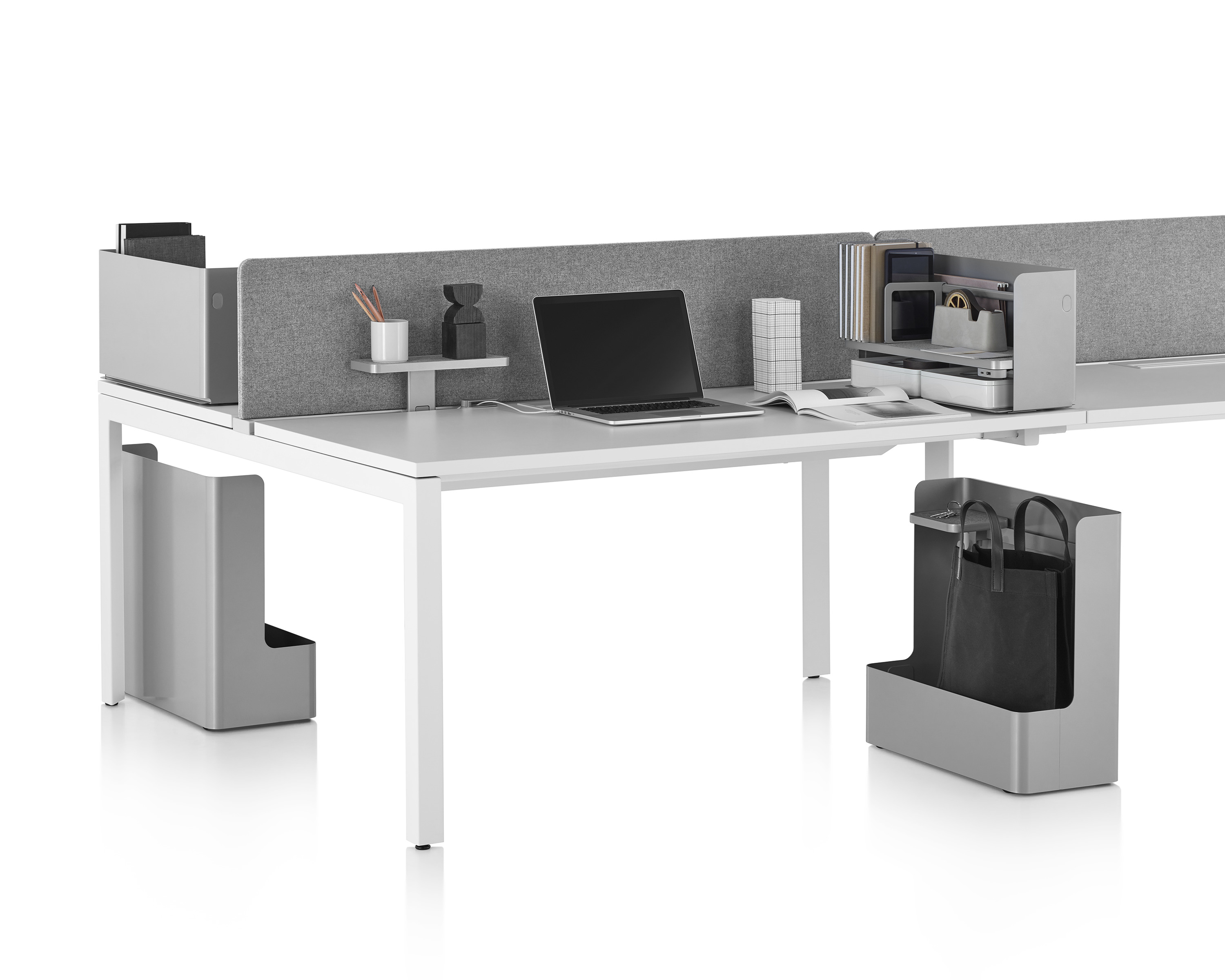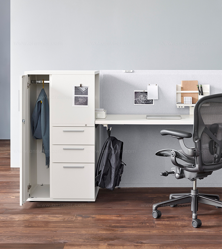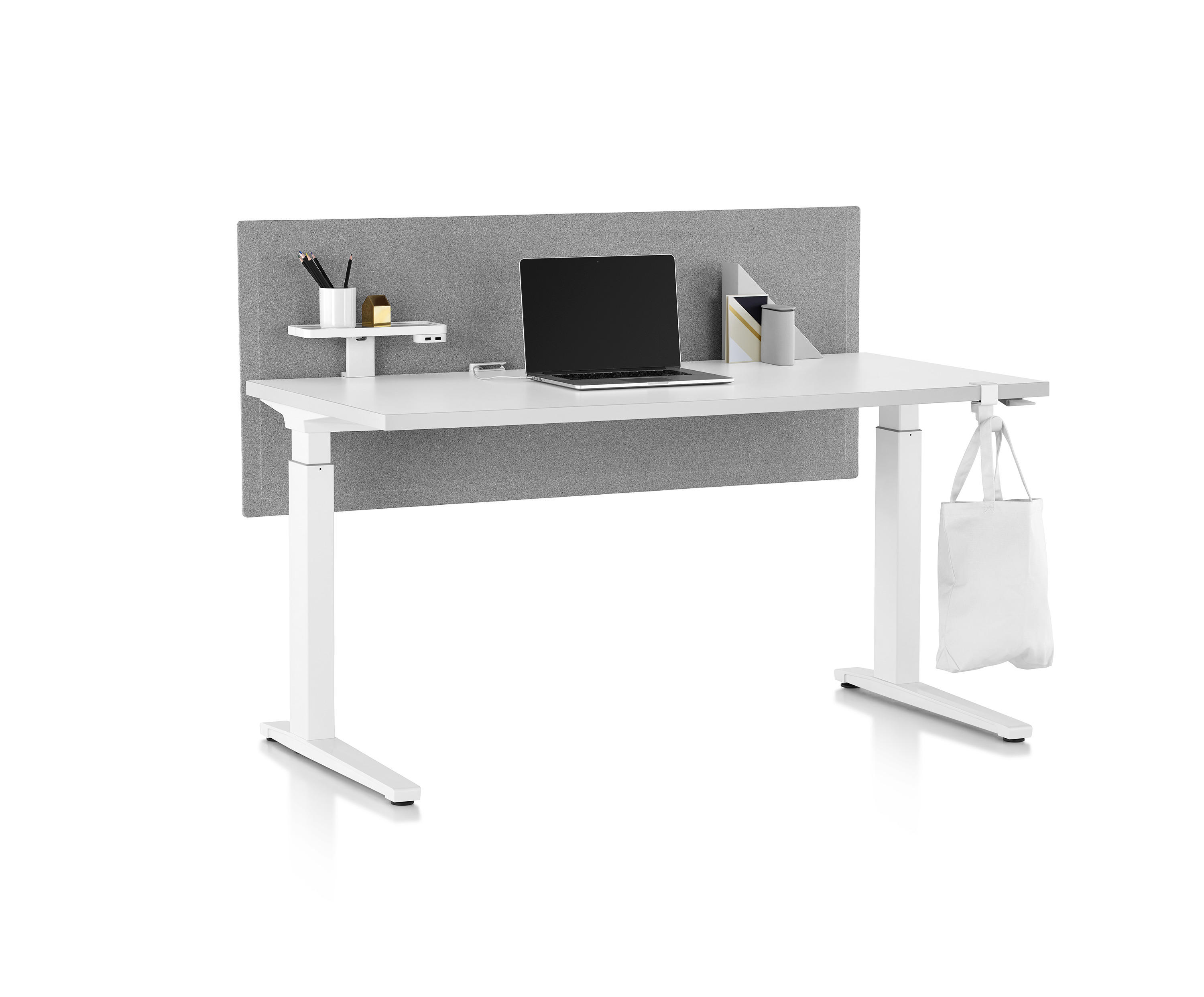 搁板安装在表面的后缘,提供额外的存储空间,无需使用工具即可重新布置。 可选背景使笔记本和参考文档可以垂直定向,从而释放桌面的表面。