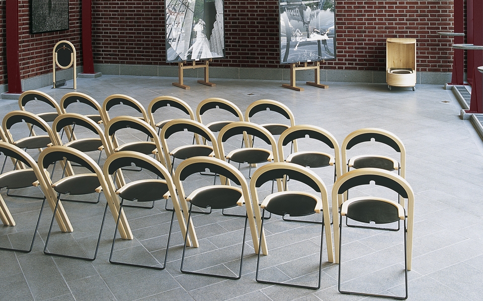 Beplus -Beplus是一款折叠椅/凳子,具有钢制框架和靠背,桦木座椅。Beplus非常适合短时坐下,并且其坚固的设计使其在使用时和不使用时一样美观。可通过挂在墙上,放在手推车或地板上的架子中来存放。黑色漆钢框架。透明漆桦木的靠背和座圈。透明漆漆或黑桦木的座椅填充物。 2个链接设备拉杆24把可链接椅子地板机架10个。
