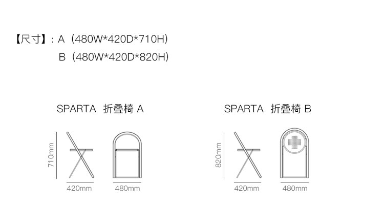SPARTA 折叠椅/餐椅 系列尺寸/示意图