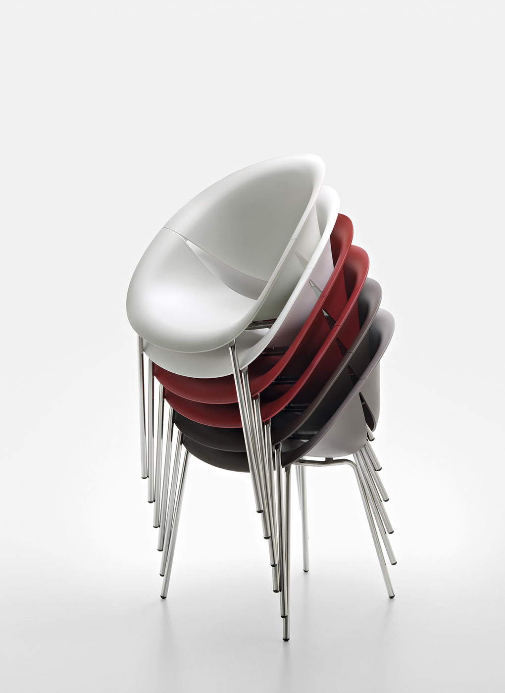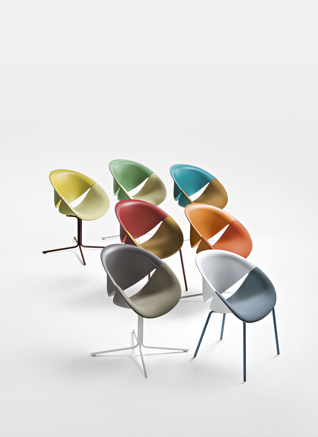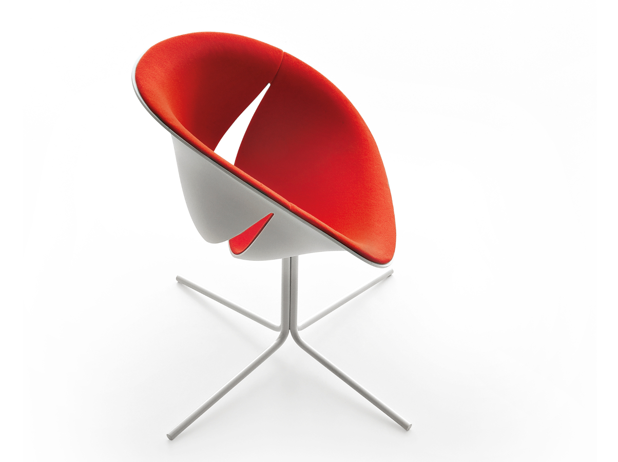 这把椅子的座椅和靠背组合在一起,露出微笑。如此幸福属于有趣的家庭想象,甚至更让人联想到彩色和覆层组合的多种可能性,从而可以个性化描述每种类型的环境。