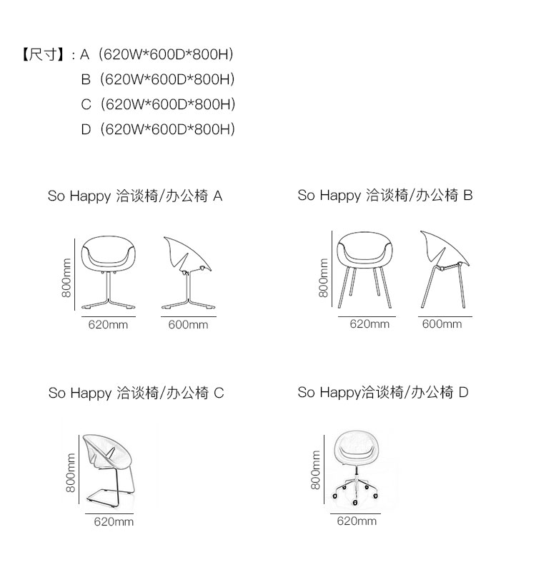 So Happy 洽谈椅/办公椅 系列尺寸/示意图