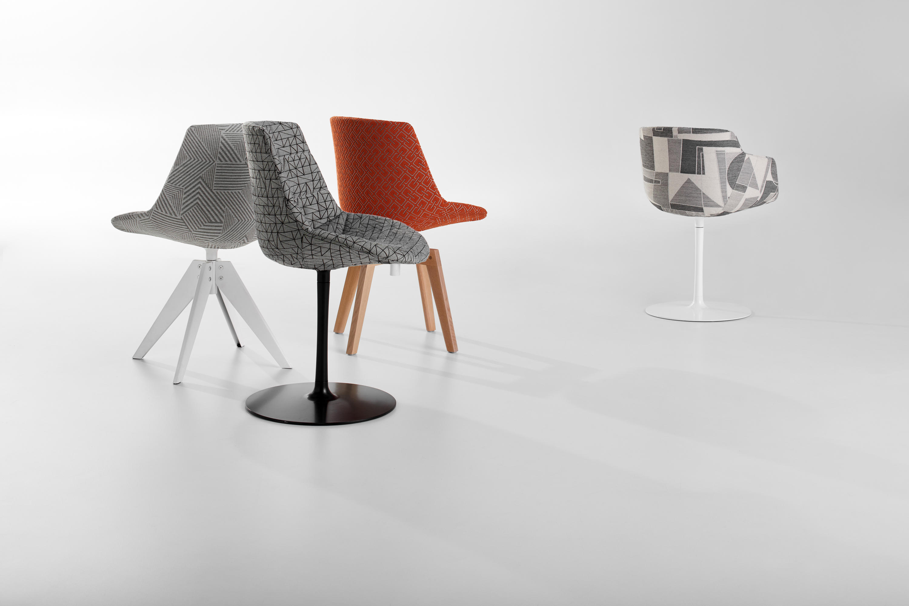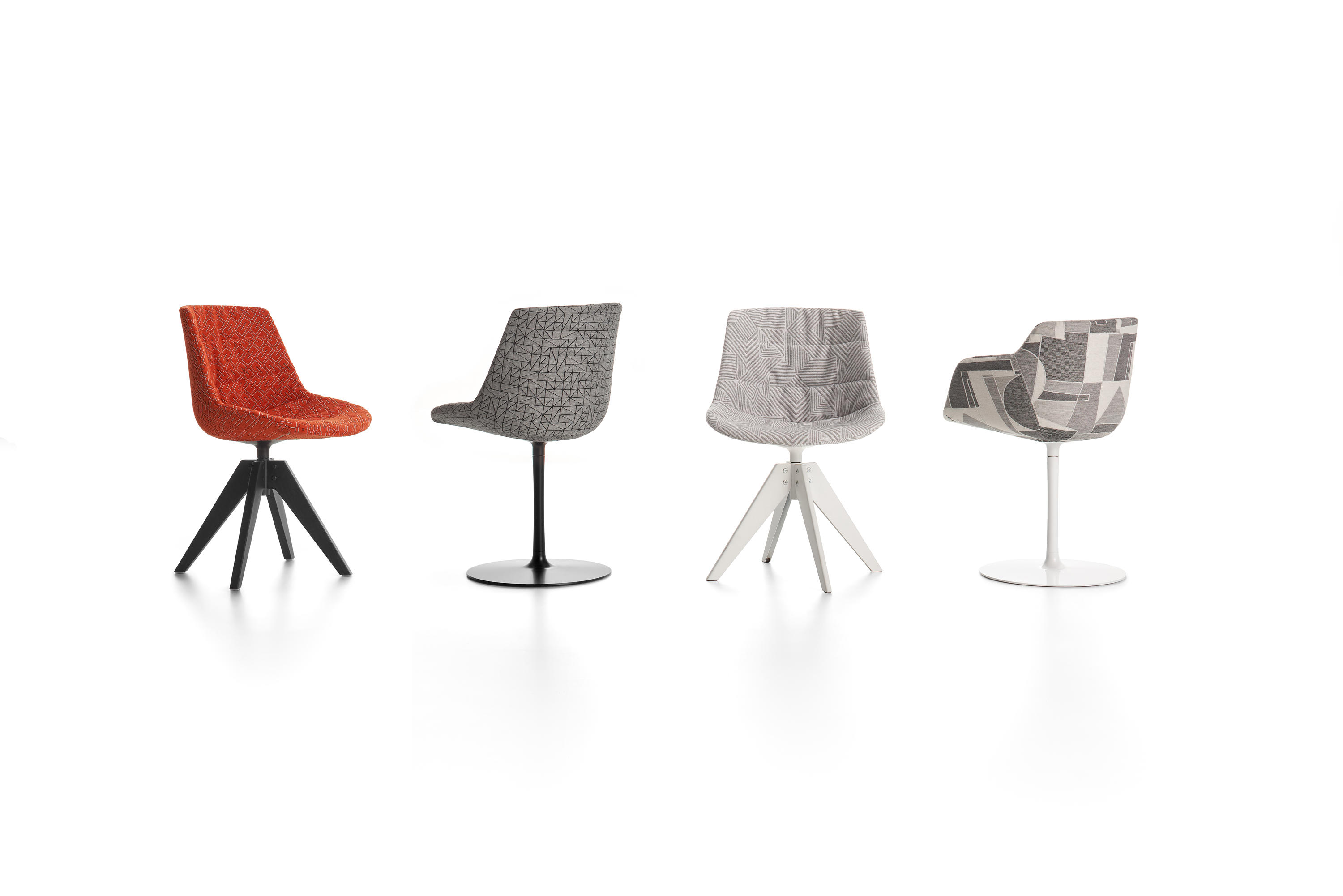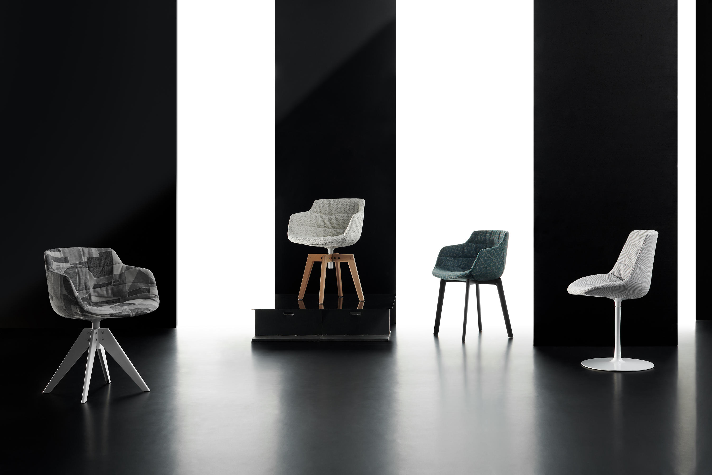 具有美学特色的座椅系列,优先考虑舒适性。Flow Chair和Flow Slim系列的软垫和完全软垫版本可提供多种底座和饰面。在Imm Cologne,新版本提供了一系列新的织物具有高度的图形的信息。该转动壳之中。艺术作品的精确几何形状和线的游戏 UPHOLSTERY 壳牌与在前面从绗缝聚氨酯和聚酯软填料制成的小垫组成的热成型和填充countershell,并用在座椅的背面拉链铺垫。 织物部分从可移动织物,其可以被补充有附加的软垫制成。 基地: •VN 4条腿的钢基中折叠片材金属,涂无光泽白色的或无光泽的石墨灰,有涂在相同颜色的铝耦合设备360°旋转。 •基带中央脚:在铝生产的涂有环氧粉末在亚光色白,石墨灰,铅灰,泥,绿色,蓝色AVIO和粉末粉红色或白色的光泽。360°旋转。 •VN 4条腿的橡木的基础上,从框架透明涂漆天然橡木实木自然,棕色或漂白光洁度,具有涂漆钢耦合装置涂无光泽白色和石墨灰。360°旋转。 •4条腿的橡木的基础上,从框架透明涂漆天然橡木实木与天然,棕色或漂白表面处理,带漆面哑光白色和石墨灰色漆钢连接装置。360°旋转。 •4条腿CROSS基:压铸铝框架和实木腿,在亚光色白,石墨灰,铅灰,泥,绿色,蓝色AVIO和粉红色粉末漆。 •4-腿CROSS OAK基:模铸铝框,上面涂有哑光环氧粉末,有白色,石墨灰色,铅灰色,泥色,绿色,阿维奥蓝色和粉红色,以及实心天然橡木腿和透明漆,可提供天然,棕色或漂白漆。