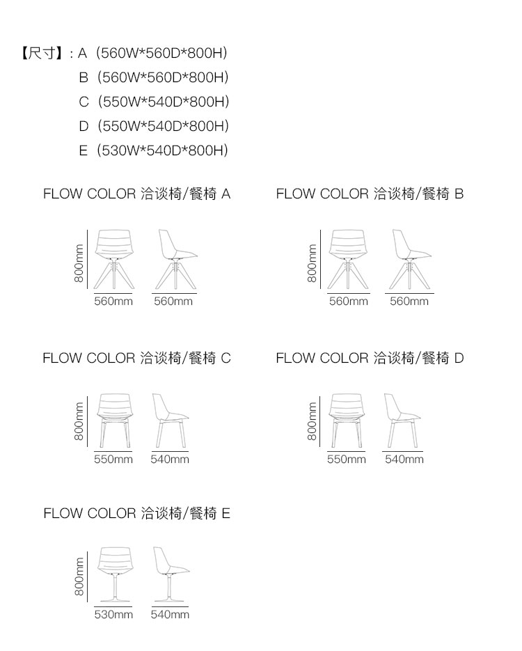 FLOW COLOR 洽谈椅/餐椅 系列尺寸/示意图