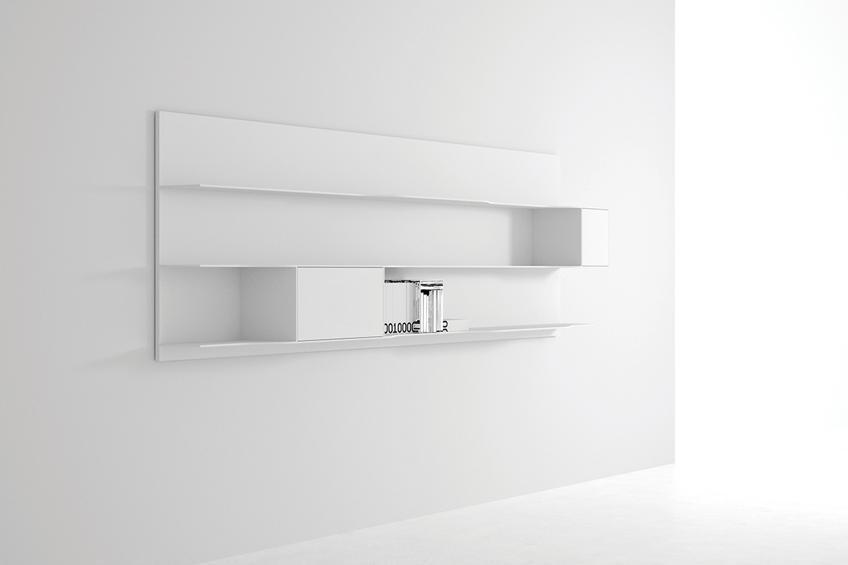 波浪壁系统,它允许开发不同的组合物,其是更受限制和稀有版,因此与少数元素使得系统更横向的房子内的非结构化版本。 视觉和功能特征保持不变,保持在设计和动态性质。原产品 搁架单元 货架由白色丙烯酸类固体表面的,厚9毫米。 一些搁板设有通过一个曲折的和精巧的设计连接深度(35/25 anD25 / 15厘米)的改变。 尺寸和类型: •L90和L180 cm矩形搁架单元,深15、25或35 cm •L90 cm前置式(左和右)搁架单元,深度可变,15/25 anD35 / 25 cm。 •L180厘米亲LED(左和右)搁置单位可变深度,35/25厘米。 •L180厘米亲率领搁架单元具有可变深度,25/35/25厘米。 他们也都在ELECTRI版版本:2个搁架单元(11.8厘米高),配备有用于电缆通道和隐藏后方的空腔。 在搁板的上部部分中,您ND对于由所述搁架的相同的材料制成的电缆管理的开口,以使向每一个可能的器具电缆出口尺寸和类型: •L180厘米亲导致ELECTRI编搁架单元具有可变深度25/35/25厘米 •L180厘米矩形ELECTRI ED搁架单元35厘米深。 可选管道,总是安装在牢固的表面上,以便在电视单元壁挂式安装时隐藏电缆。
