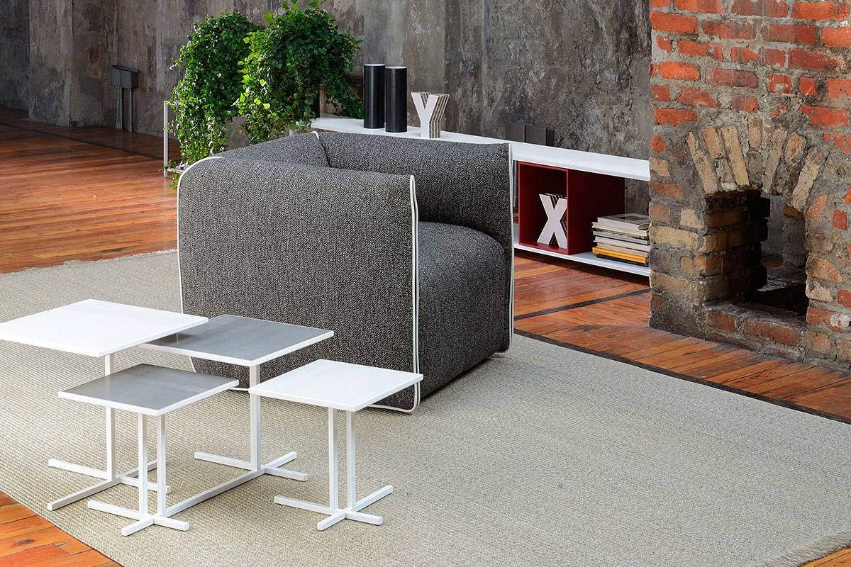 相互联系的元素令人愉悦,形成了讽刺意味的集合。通过简单的设计,K咖啡桌可以包含在任何上下文和设置中;作为单个零件或组合在一起,可以找出基于客户创造力的不同配置和组成。镜框为哑光白色或石墨漆钢制。瓷釉桌面,有亮面或缎面涂层:白色,中灰色和无烟煤色,以及特殊的Corten哑光版本。