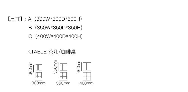 KTABLE 茶几/咖啡桌 系列尺寸/示意图