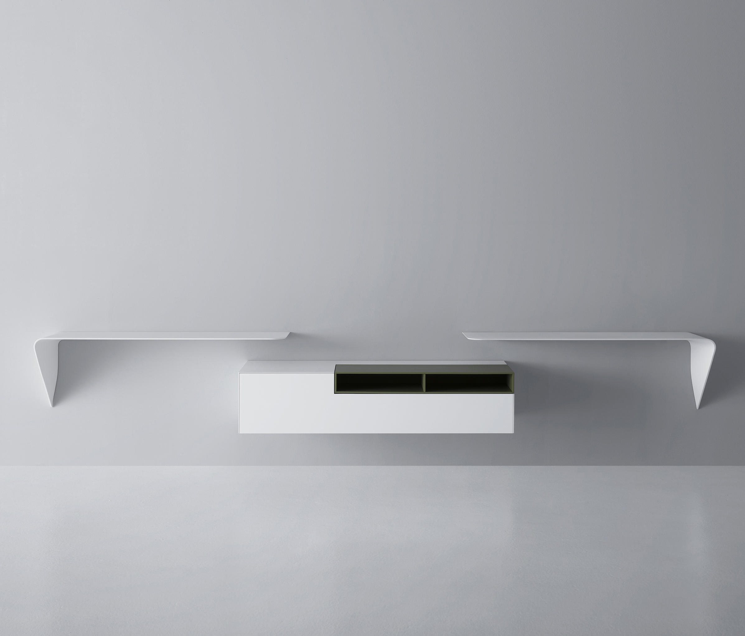 架子和/或壁挂式书桌。波浪形和渐缩的厚度为产品的设计和图像增添了强烈的视觉冲击。Mamba还配备了白色的HD LED。