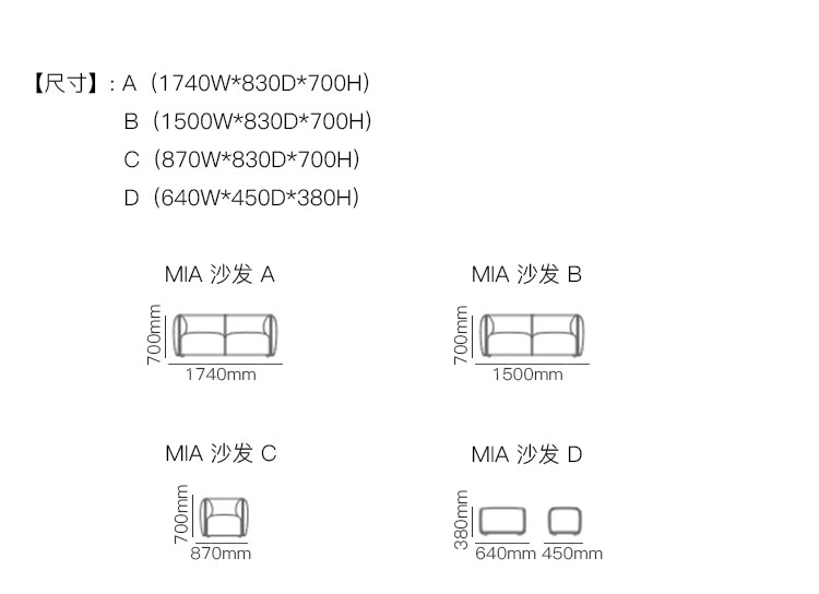 MIA 沙发 系列尺寸/示意图