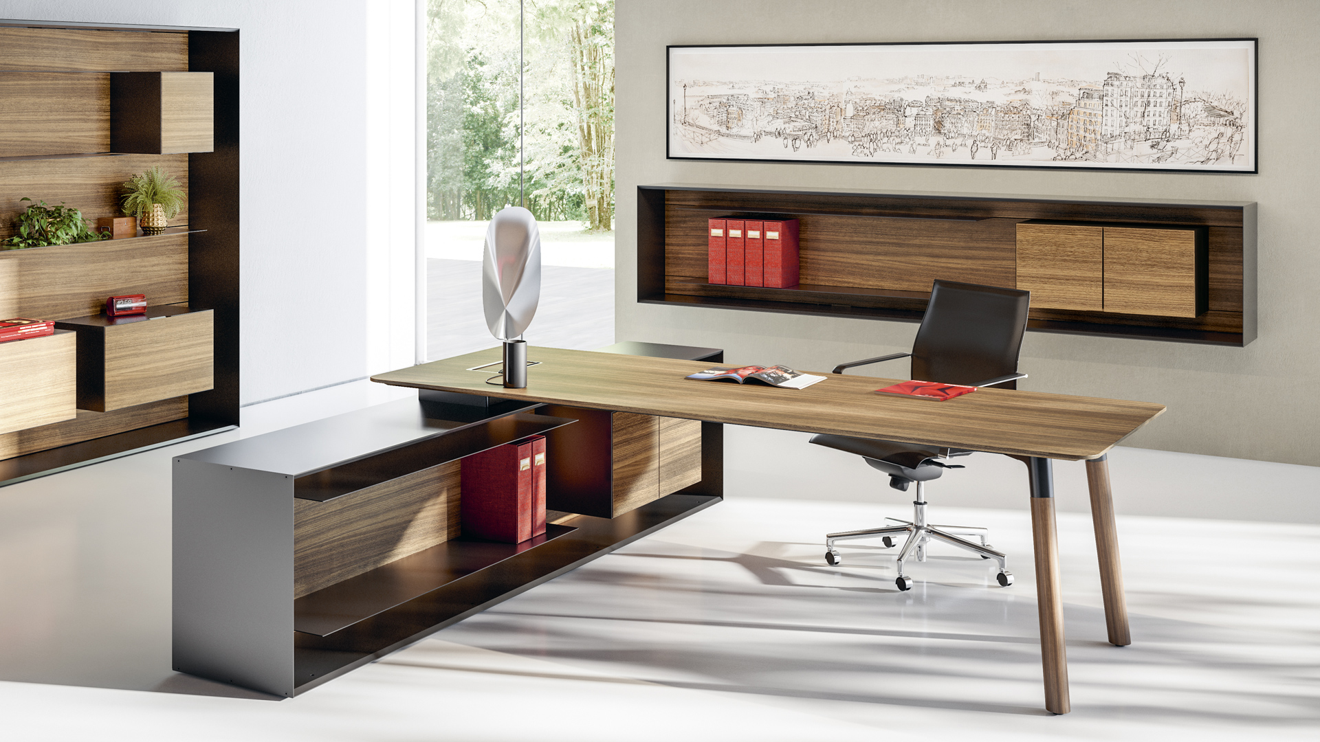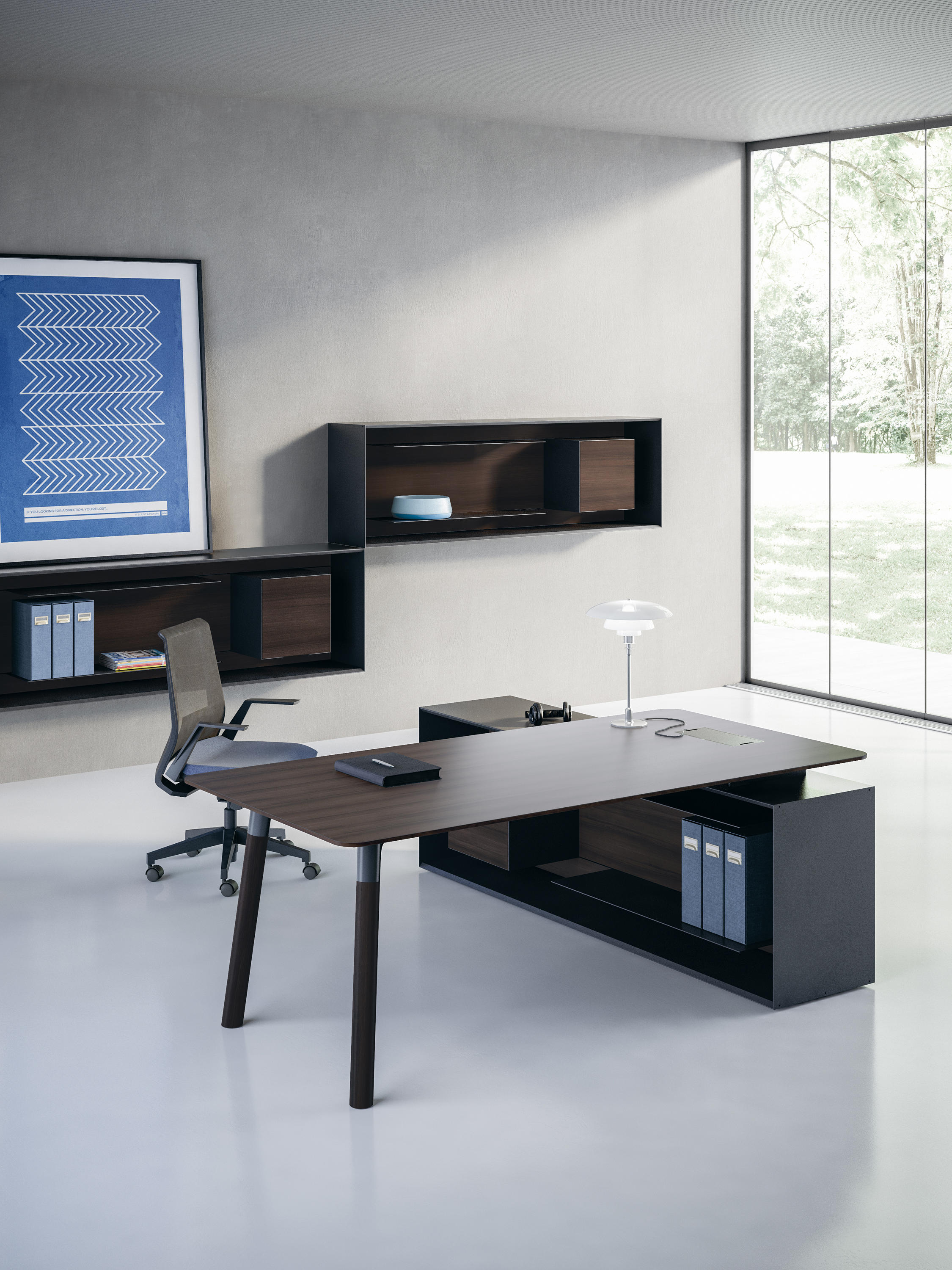 Outline由Metrica,米兰,设计是当代行政办公室创建一个存储系统, 除了传统的功能,和显示器的作用典型的行政办公系统,这种装饰功能将定义你的墙壁空间,打造出一个专业的环境,维护审美素质比较典型的国内内饰的感觉。 三个版本可供选择:一落地柜/书柜,壁挂式单元和餐具柜专为提供行政表的支持和存储各种Fantoni系列。 这种存储系统的通用性是其主要特征之一:它与Woods(同样由Studio Metrica出品)和Fanponi的两个主要执行系列Multipliceo完美地集成在一起,并且与其他系列相辅相成,尤其是增强了强烈的个性感。