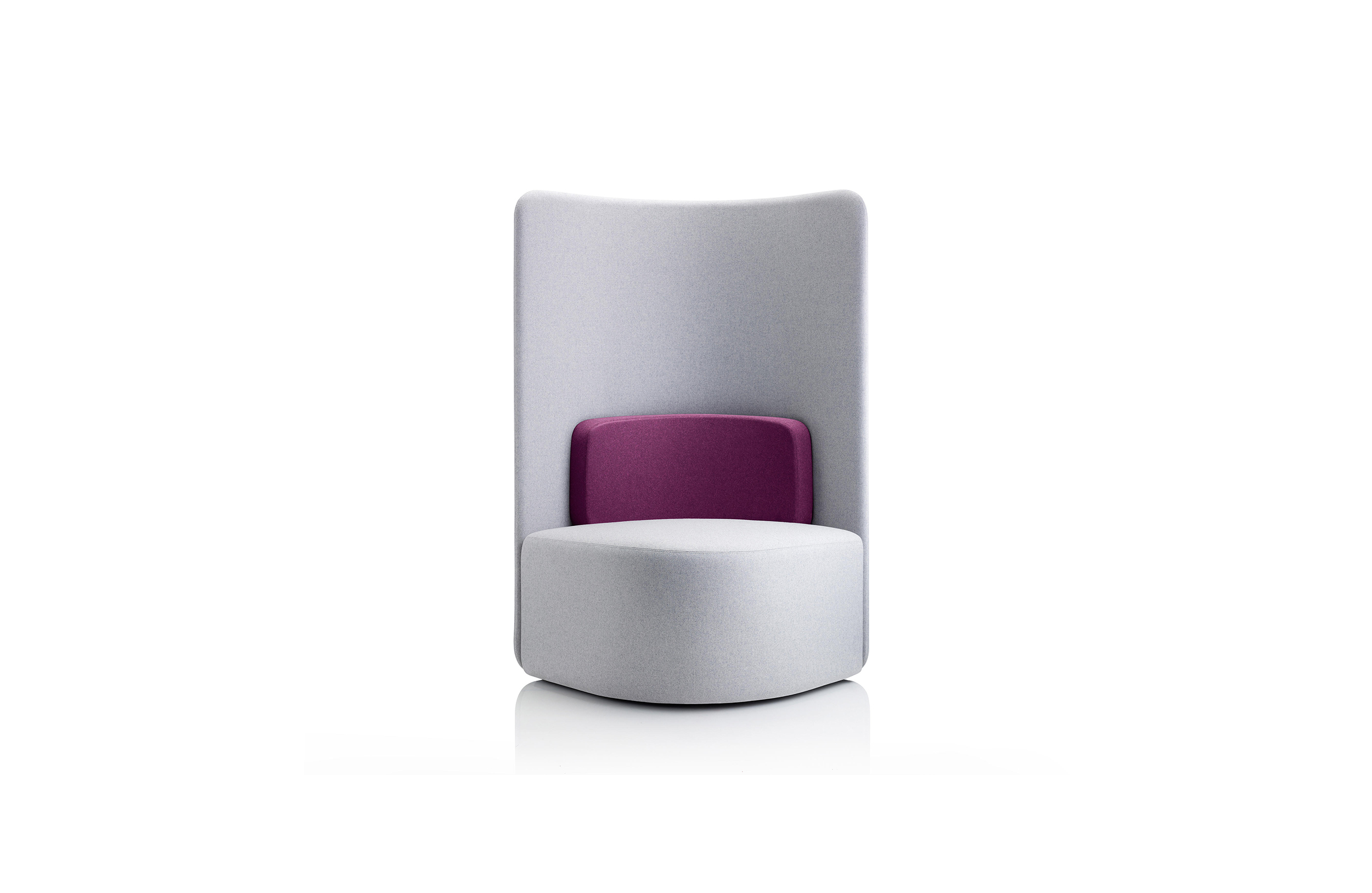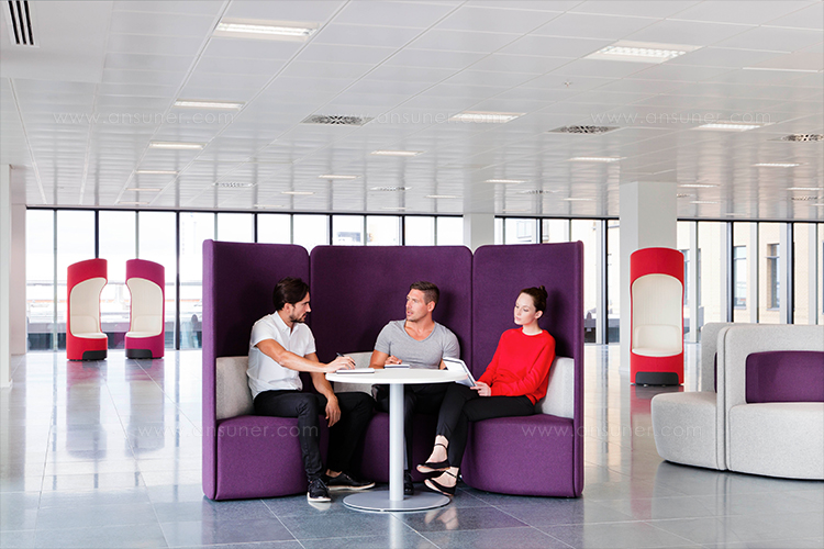 作为一种有高、低背两种款式可供选择的椅子,这种设计可以提高声学特性,并吸收周围背景噪音。
