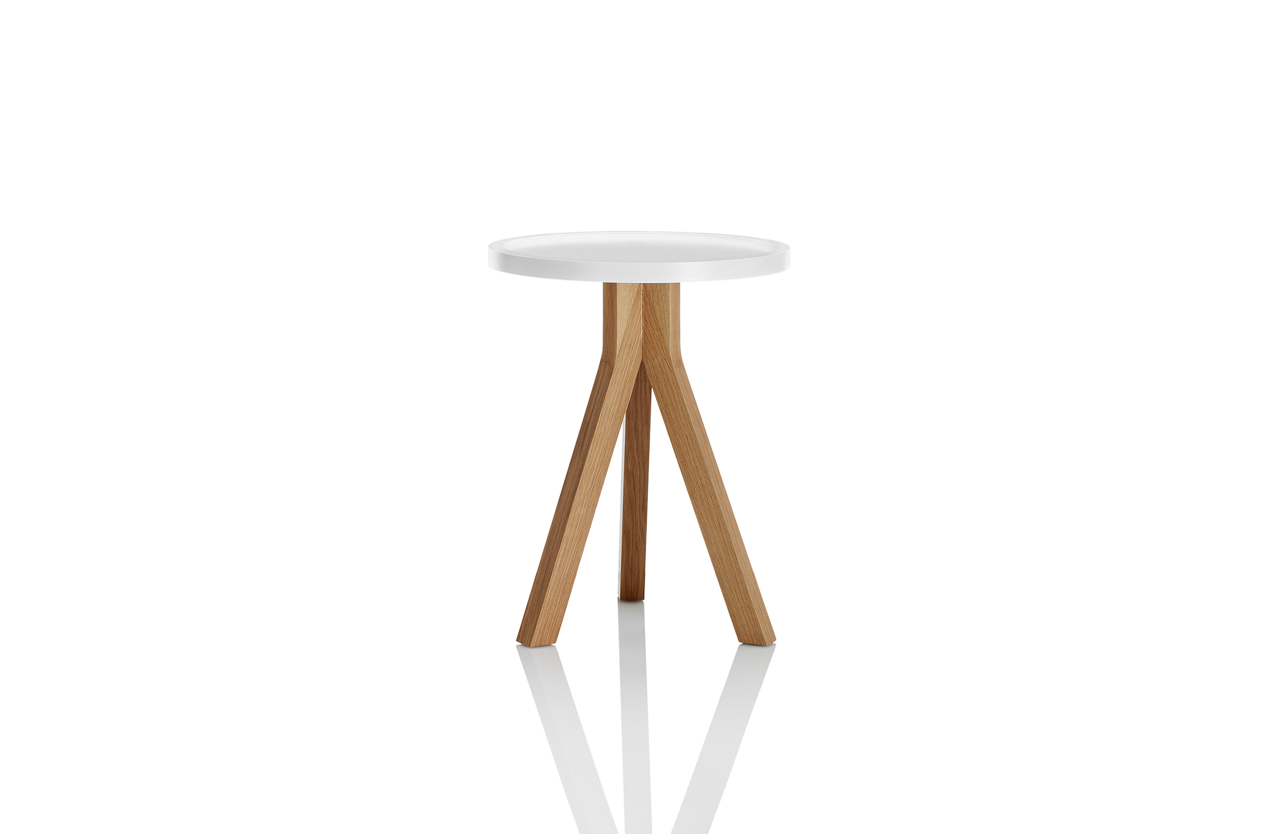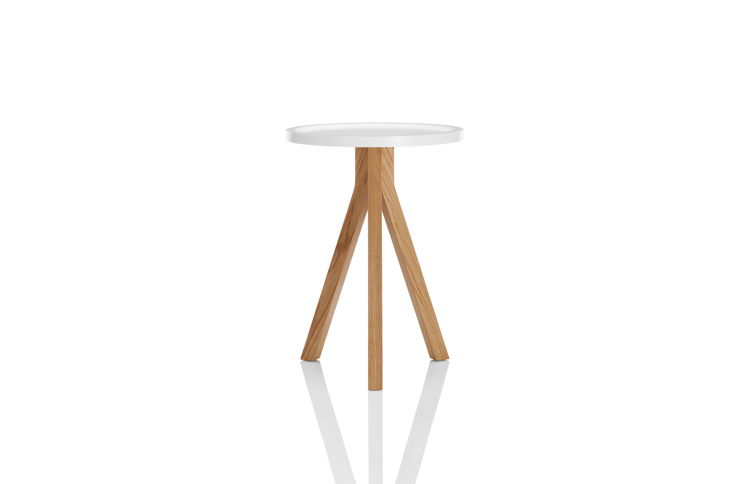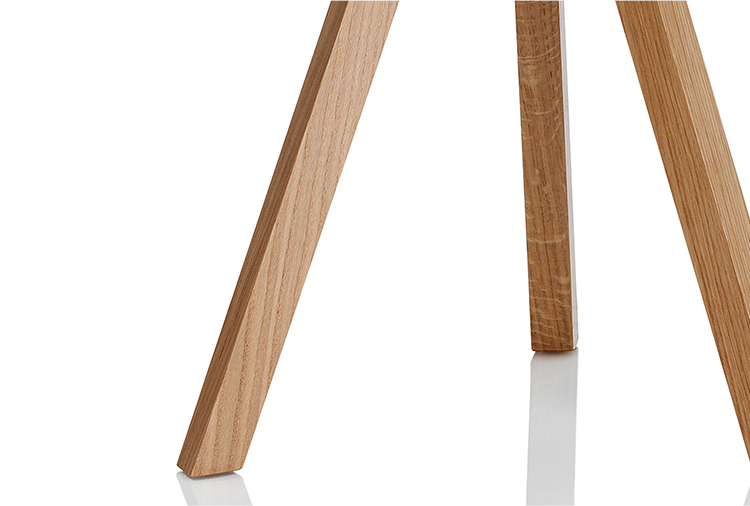 Oozing美感上的吸引力,表现在其的特点,一种大胆而又优雅的三脚式腿部设计布局,它巧妙地结合了一个带有方形边缘细节的圆形桌面。这三张桌子的每一张都采用了一种不同寻常的“效果”,这是一种7毫米的牛鼻窝设计,目的是确保物品保持在顶部表面——一种实用而优雅的设计细节,适合商业应用。