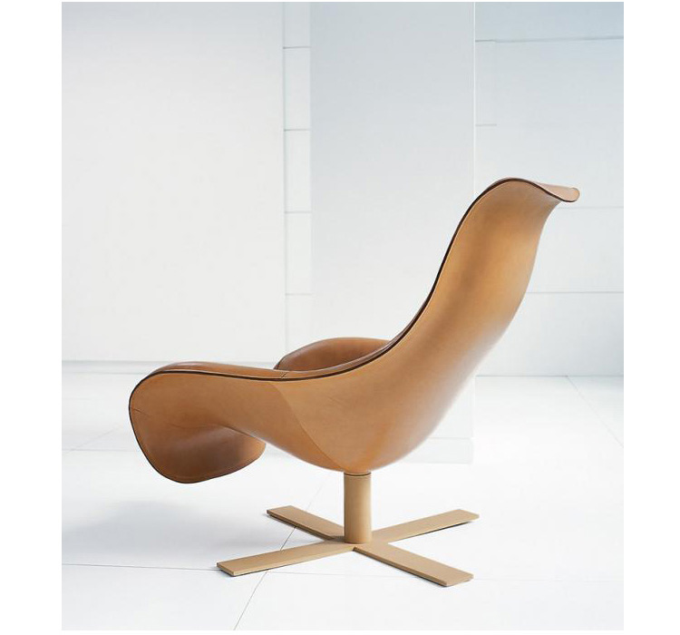 由于一项加热成形皮革生产技术,经过实验以及调研,我们推出了马特椅。它有两种类型的座位可供选择:一个较小的款型和较大的款型。这两种款型的版本都提供一个可旋转圆盘状铝基。面料可选黑色纤维织物或浸漆皮革。还有一种类型的脚架是十字形的。脚架镀明亮的铬抑或黑色涂漆不锈钢。它们都配有脚轮,可转动,并配以舒适的坐垫,坐垫为热成形皮革或者纤维面料。