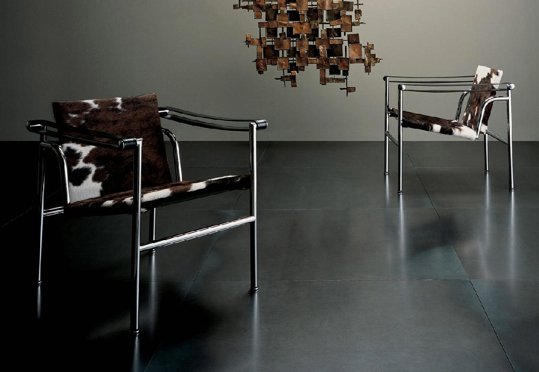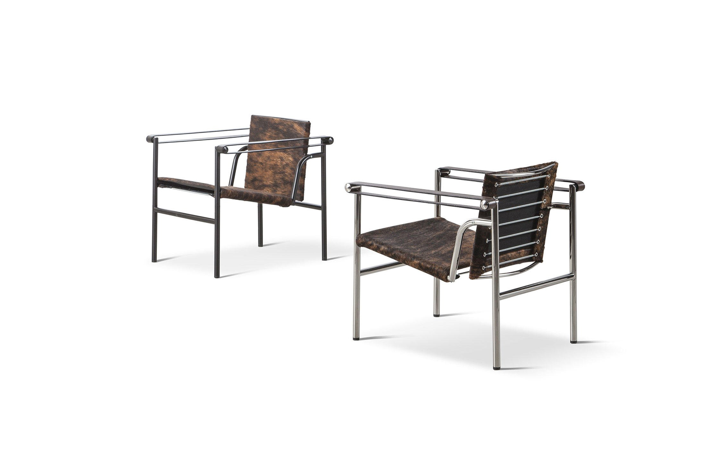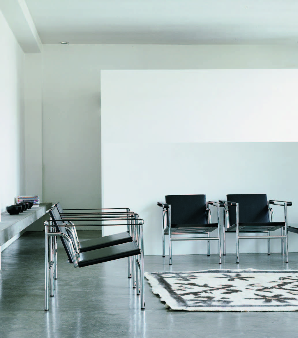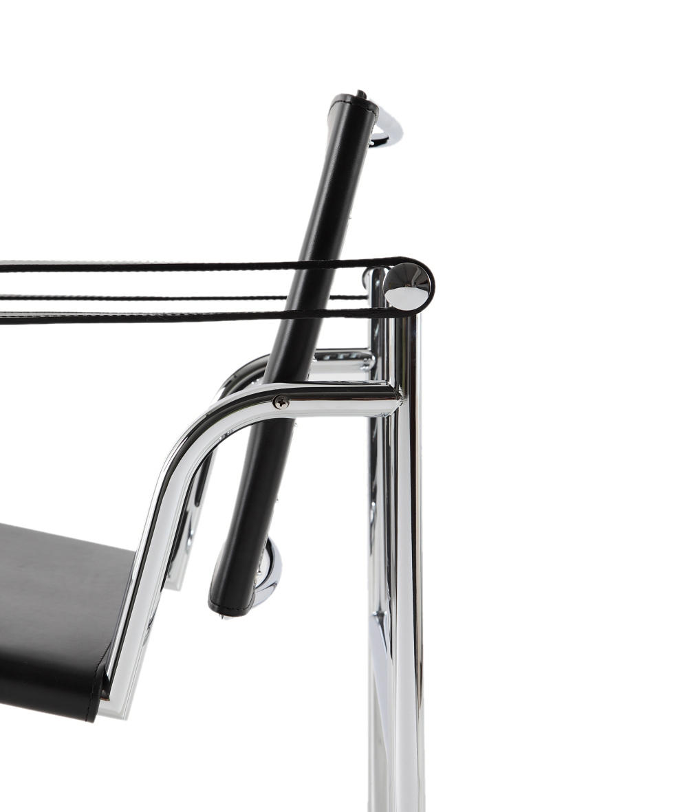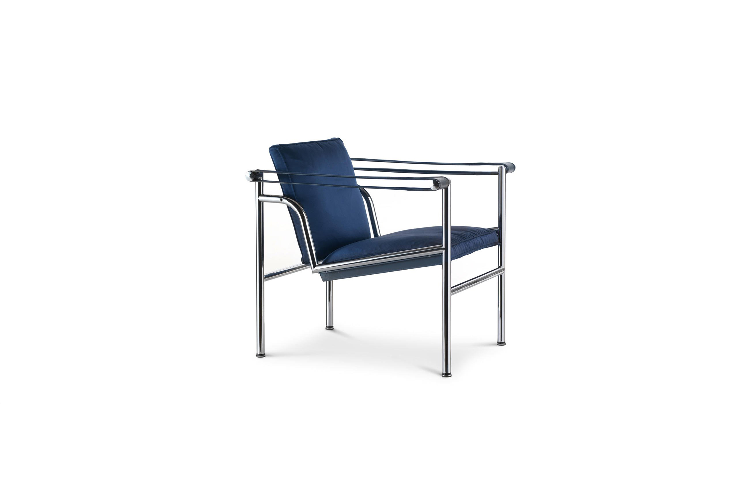 1928年诞生的LC1一款扶手椅Ville-d’Avray,采用环保的CR3三价镀铬钢结构。由建筑设计师设计,采用聚氨酯软垫座面和靠背,可提供更好的舒适性。扶手椅前面较宽,向后逐渐收窄。蓝缎饰面;扶手前端带有灰色皮革镶边。这款扶手椅是1928年专为Villa Church à Ville-d’Avray设计的,坐垫和靠背的填充满足客户的最舒适要求。1928年还为收藏家Raoul La Roche的艺术馆创造了一款类似的填充模型。这些原型用于更精确地定义1929秋季沙龙模型的结构。