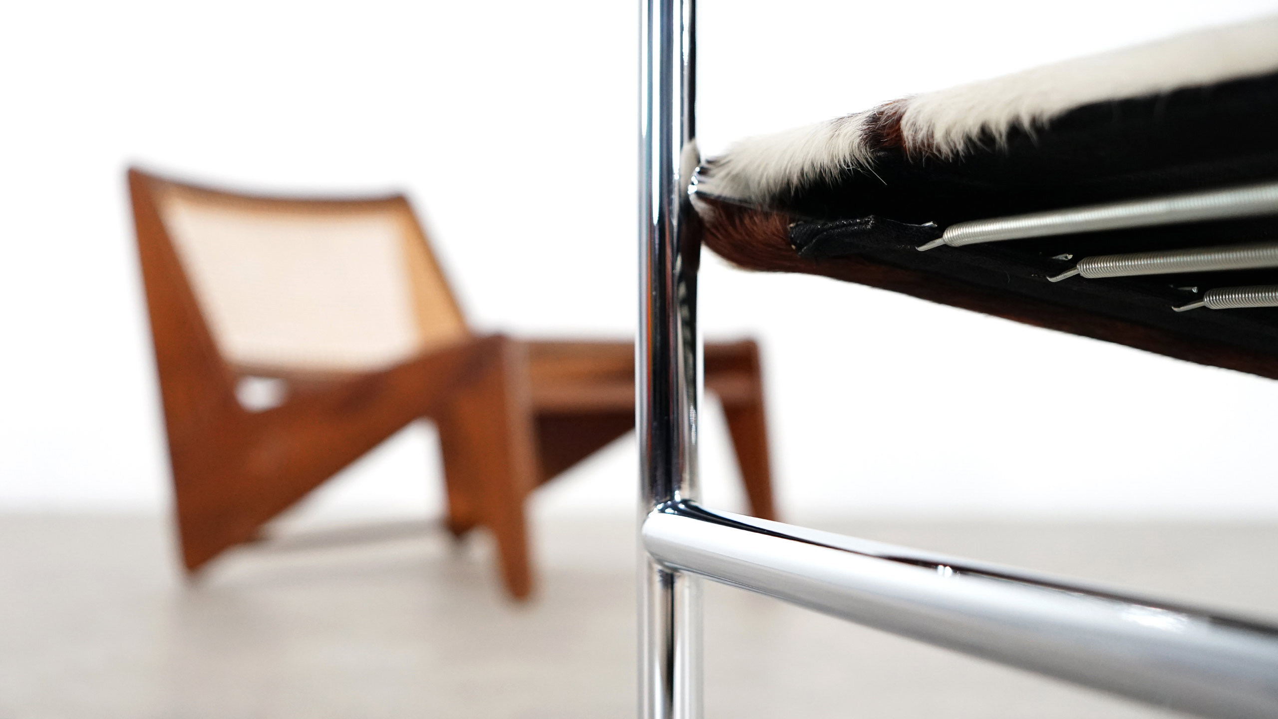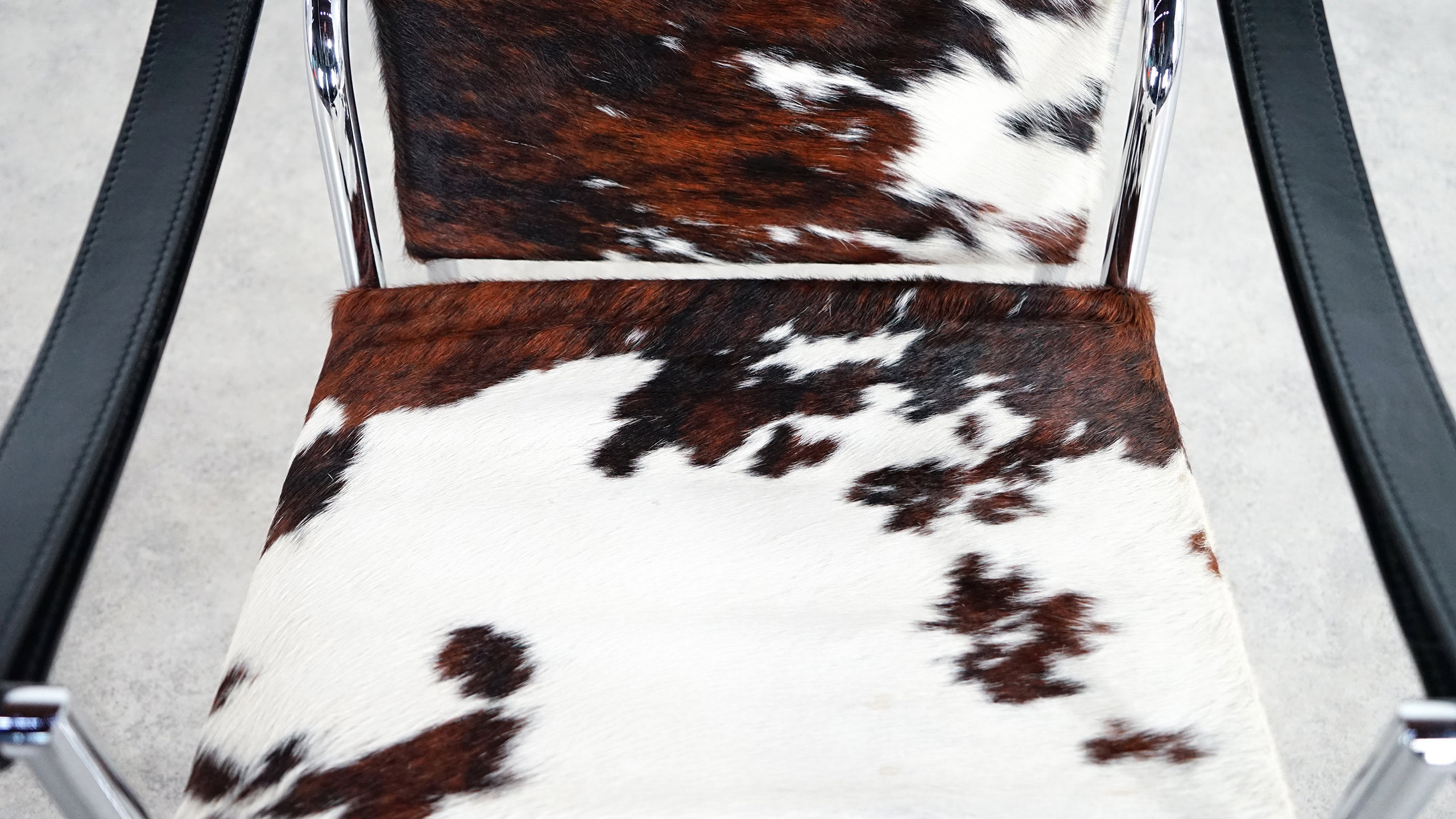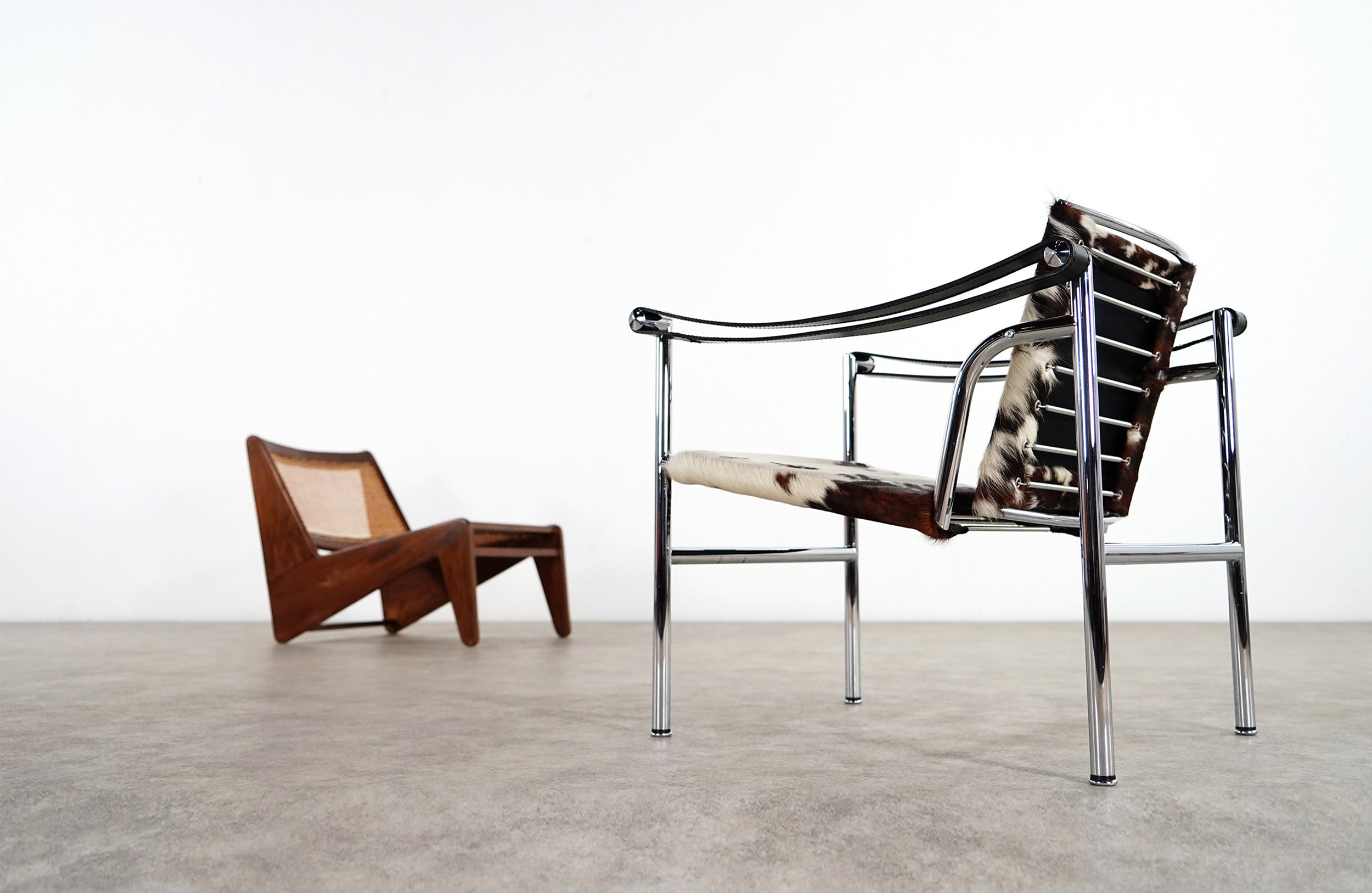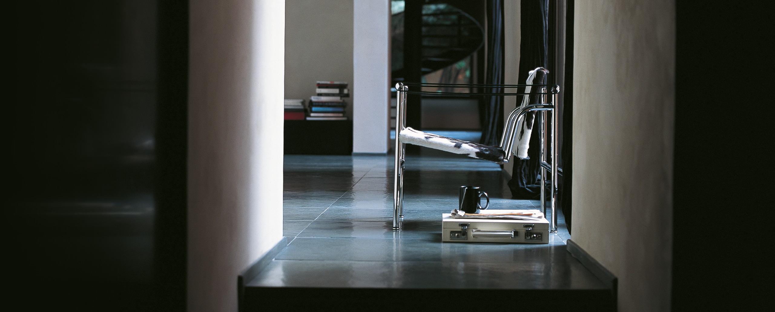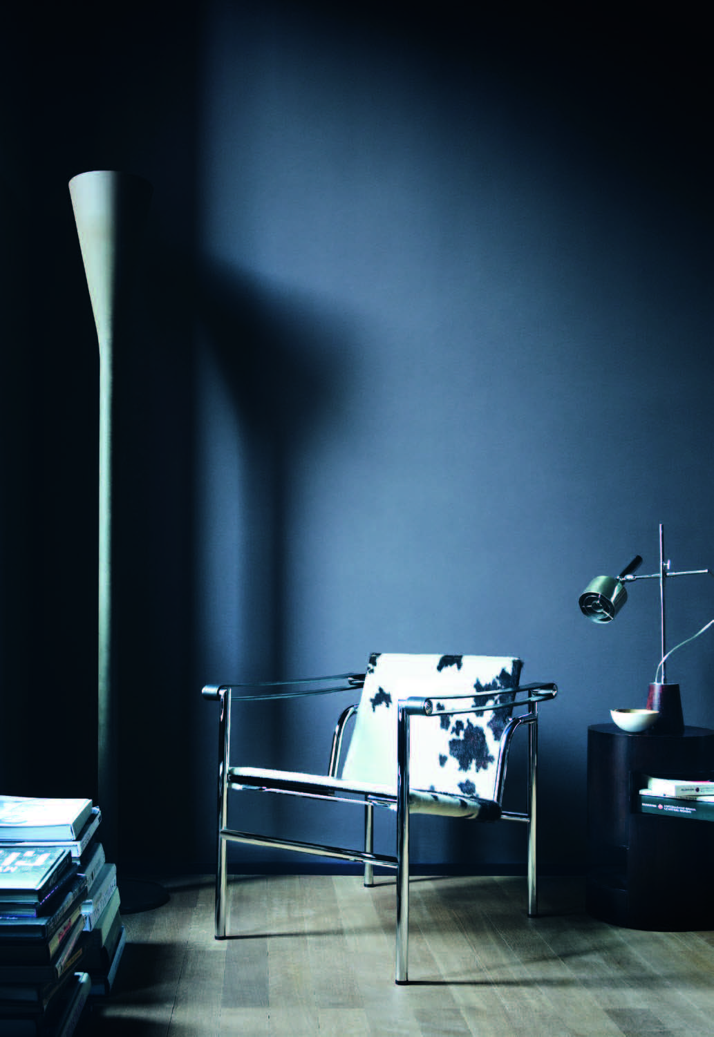 1928年诞生的LC1一款扶手椅Ville-d’Avray,采用环保的CR3三价镀铬钢结构。由建筑设计师设计,采用聚氨酯软垫座面和靠背,可提供更好的舒适性。扶手椅前面较宽,向后逐渐收窄。蓝缎饰面;扶手前端带有灰色皮革镶边。这款扶手椅是1928年专为Villa Church à Ville-d’Avray设计的,坐垫和靠背的填充满足客户的最舒适要求。1928年还为收藏家Raoul La Roche的艺术馆创造了一款类似的填充模型。这些原型用于更精确地定义1929秋季沙龙模型的结构。