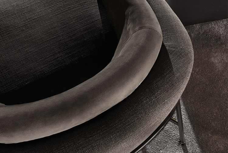 Fil Noir沙发系列的名称源于一个物品,那就是线条——连续性的象征。线条赋予沙发形状和具象:不仅创造出整体造型,还提供支撑并环抱其中。线条体现出简约的材料之选:亚光黑色漆面的金属管。沙发边角的亮光金色、黑镍金属色或浅铜色的圆环为这一严谨的材料之选平添一份柔和的装饰效果,与冷峻的结构形成巧妙的对比。