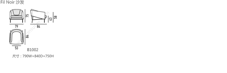 Fil Noir 沙发 系列尺寸/示意图