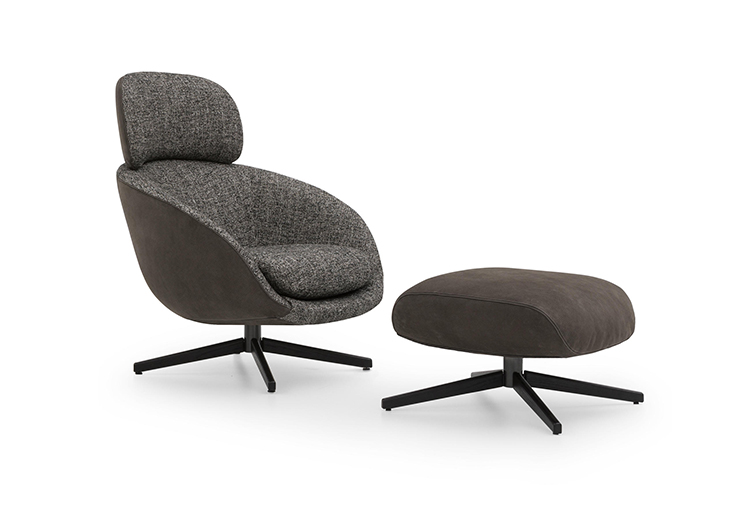 扶手椅、折叠式扶手椅、休息厅和餐椅的旋转版本则以木制辐条制成的底座为特色。