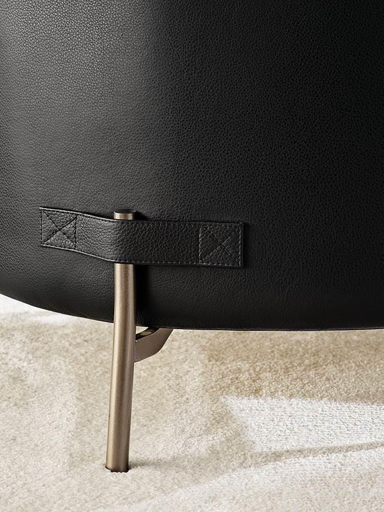 这条带子的名字来自于高级定制服装的细节,它被设计成一条丝带,用来固定浅青铜色的金属脚。