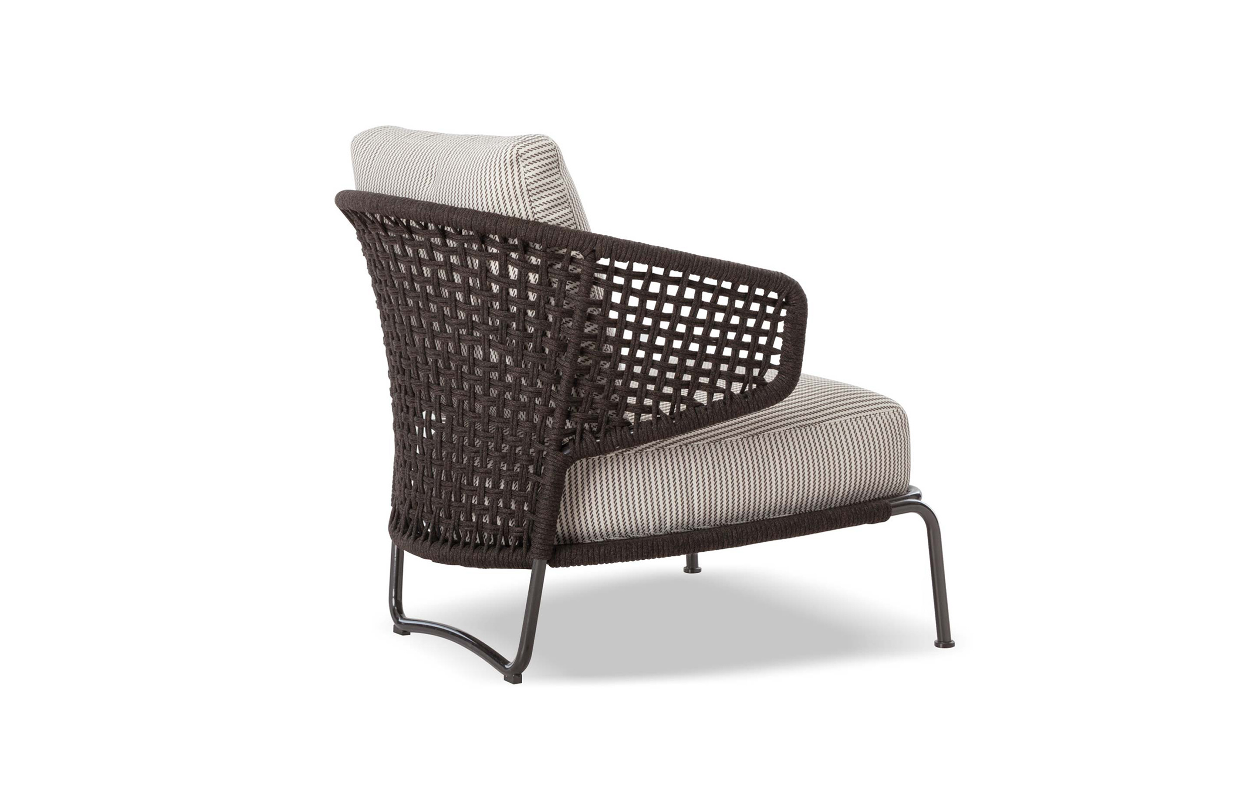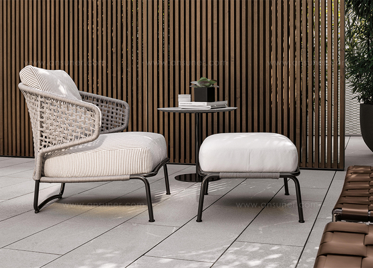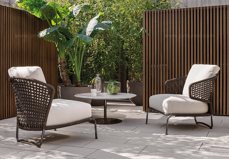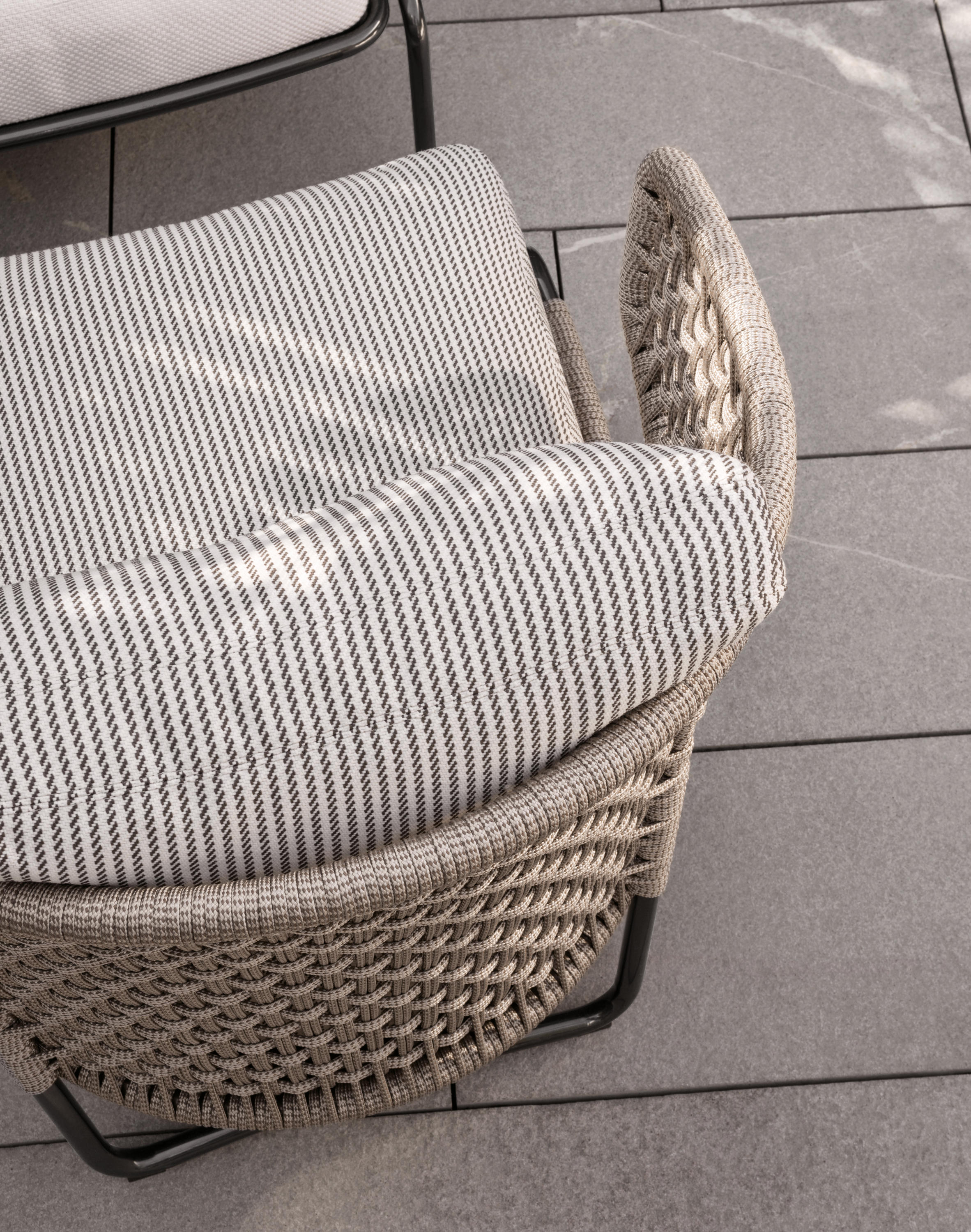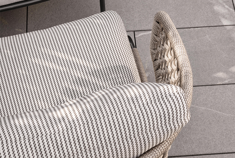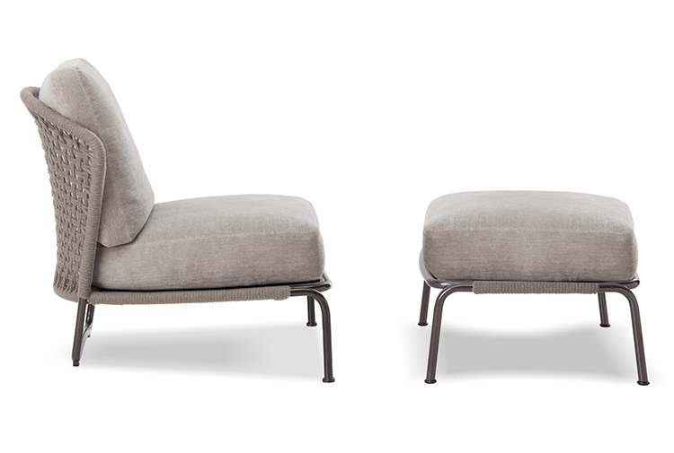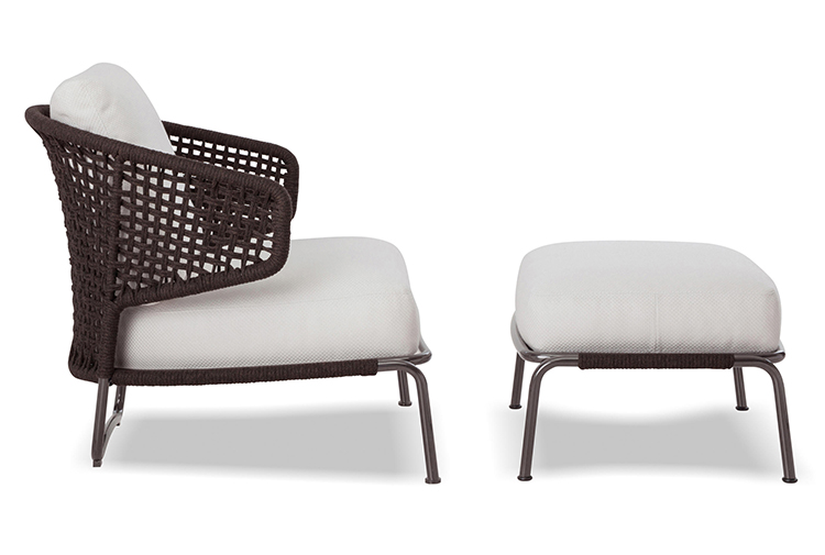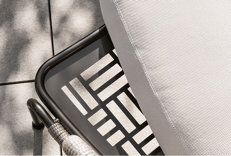 阿斯顿和阿斯顿 “绳”:两者拥有同样的设计内涵和共同的美学语言,和谐的线条和精简的造型可以打造极具创意的室内设计项目,室外和室内环境之间的连续性和统一的风格是其特点所在。阿斯顿 “绳” 室内扶手椅通过不同的材质来重新诠释设计理念。构架为金属材质,表面为Pewter色漆面,靠背采用直径为7毫米的特殊聚丙烯纱线编织而成,有两种颜色可供选择:浅灰色和深棕色。阿斯顿 “绳”室内扶手椅推出了有扶手和无扶手的两个版本,通过清新休闲的造型,可以打造出别具创意的室内和室外互动效果。