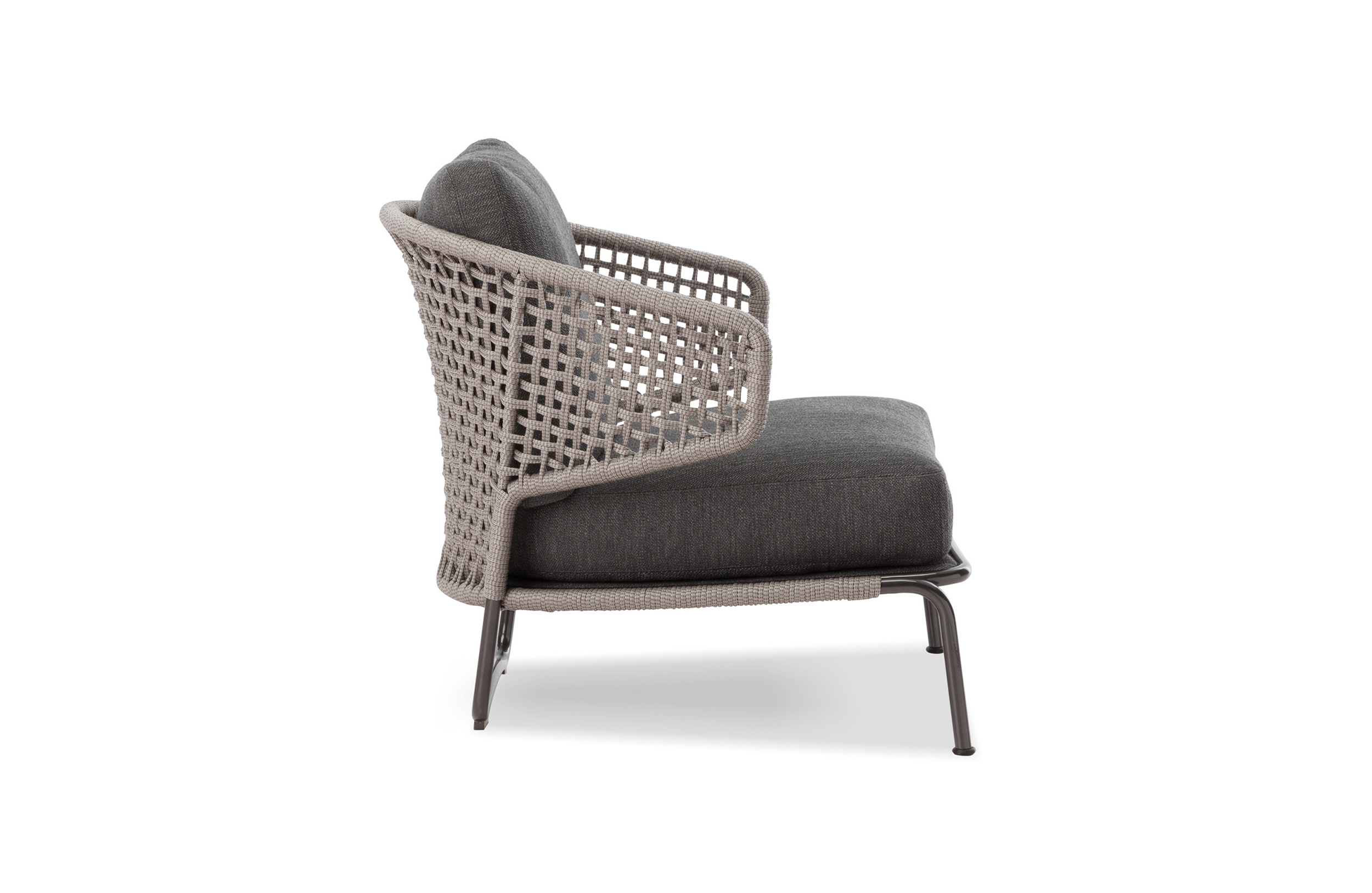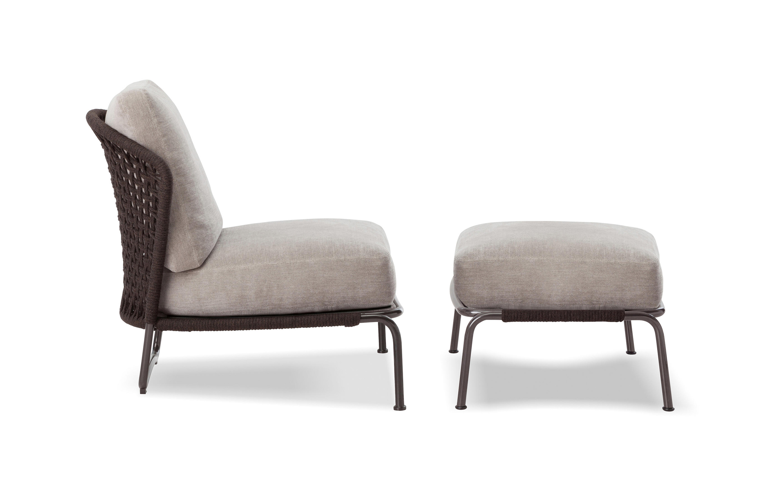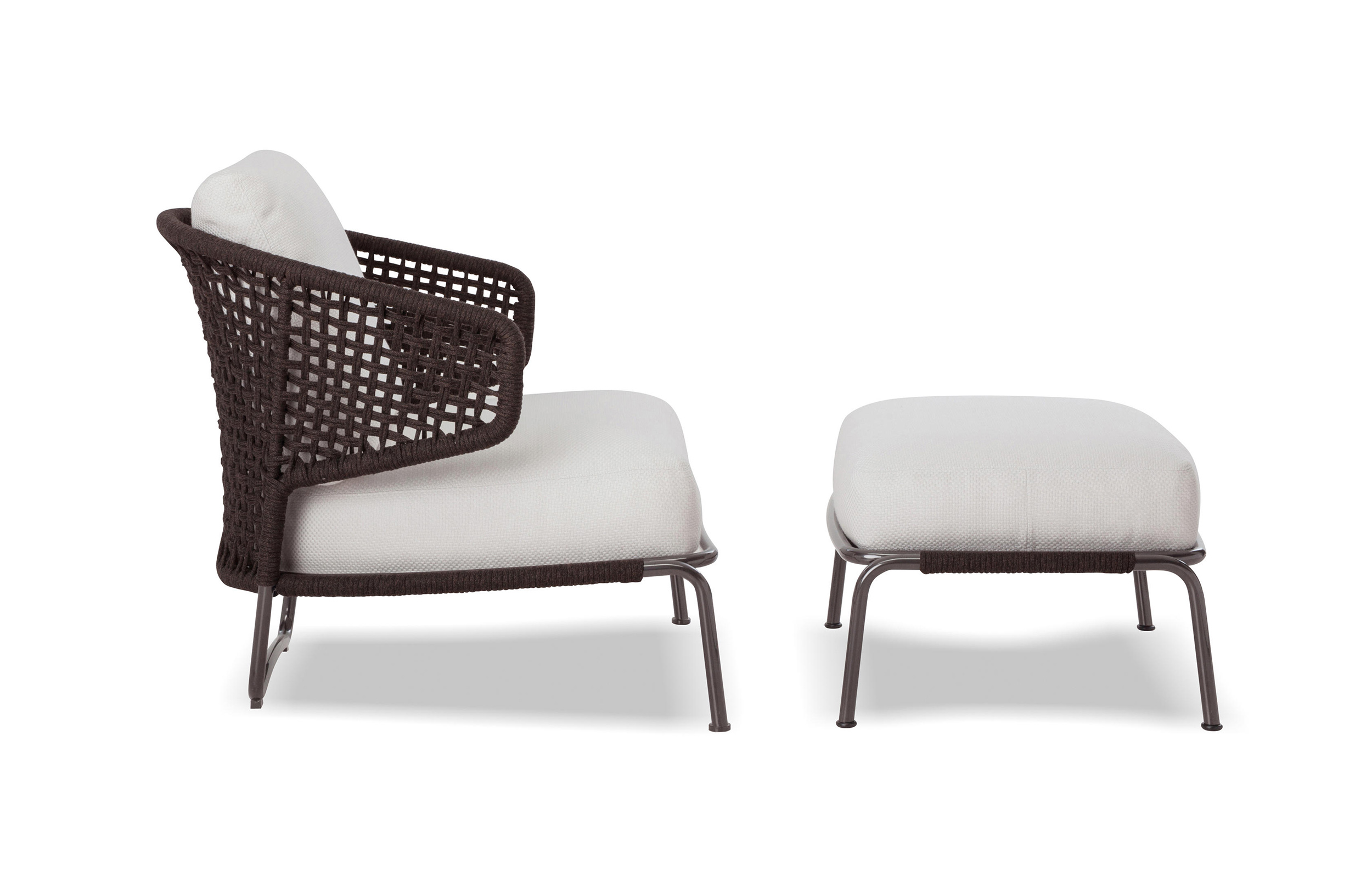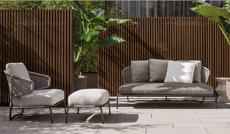 阿斯顿和阿斯顿 “绳”:两者拥有同样的设计内涵和共同的美学语言,和谐的线条和精简的造型可以打造极具创意的室内设计项目,室外和室内环境之间的连续性和统一的风格是其特点所在。阿斯顿 “绳” 室内扶手椅通过不同的材质来重新诠释设计理念。构架为金属材质,表面为Pewter色漆面,靠背采用直径为7毫米的特殊聚丙烯纱线编织而成,有两种颜色可供选择:浅灰色和深棕色。阿斯顿 “绳”室内扶手椅推出了有扶手和无扶手的两个版本,通过清新休闲的造型,可以打造出别具创意的室内和室外互动效果。