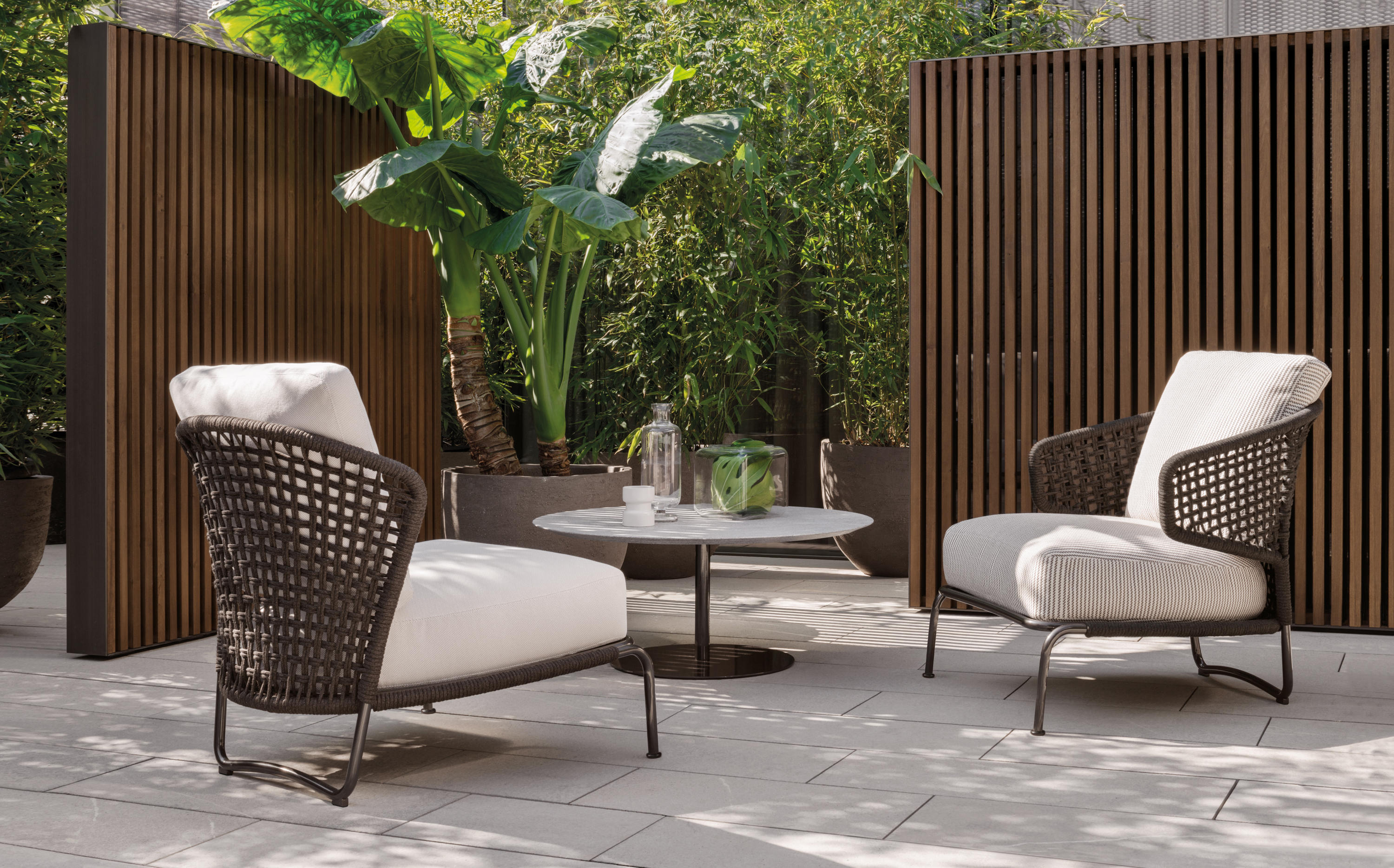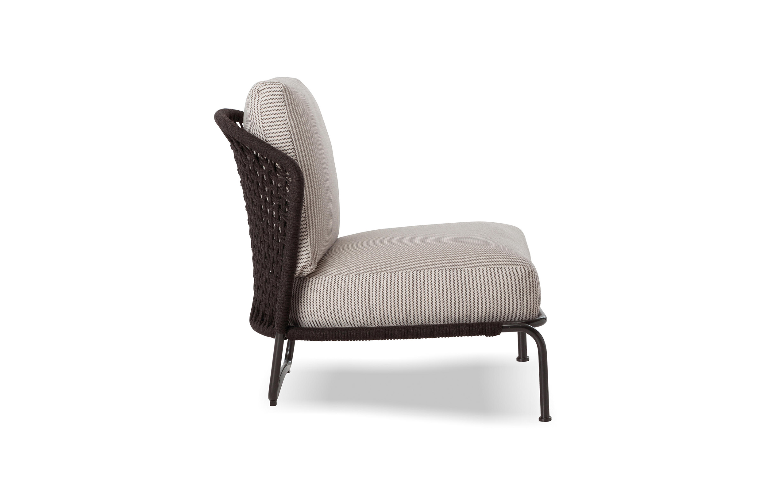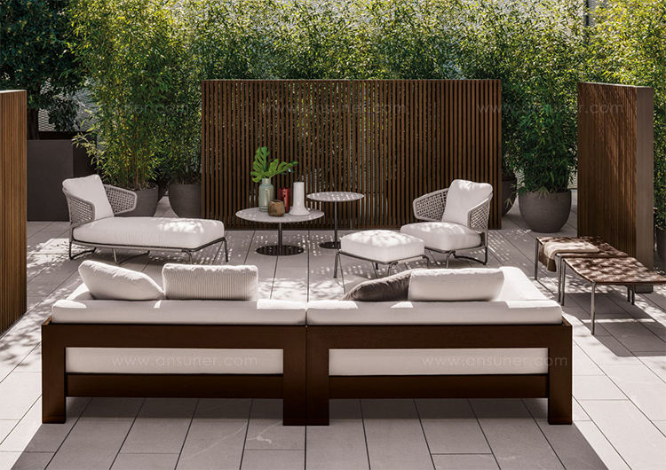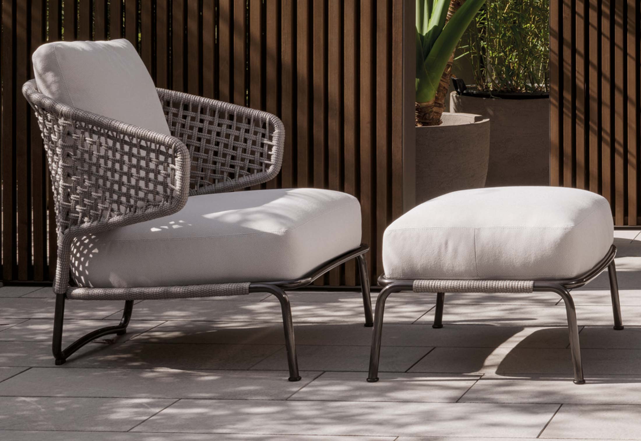 阿斯顿和阿斯顿 “绳”:两者拥有同样的设计内涵和共同的美学语言,和谐的线条和精简的造型可以打造极具创意的室内设计项目,室外和室内环境之间的连续性和统一的风格是其特点所在。阿斯顿 “绳” 室内扶手椅通过不同的材质来重新诠释设计理念。构架为金属材质,表面为Pewter色漆面,靠背采用直径为7毫米的特殊聚丙烯纱线编织而成,有两种颜色可供选择:浅灰色和深棕色。阿斯顿 “绳”室内扶手椅推出了有扶手和无扶手的两个版本,通过清新休闲的造型,可以打造出别具创意的室内和室外互动效果。