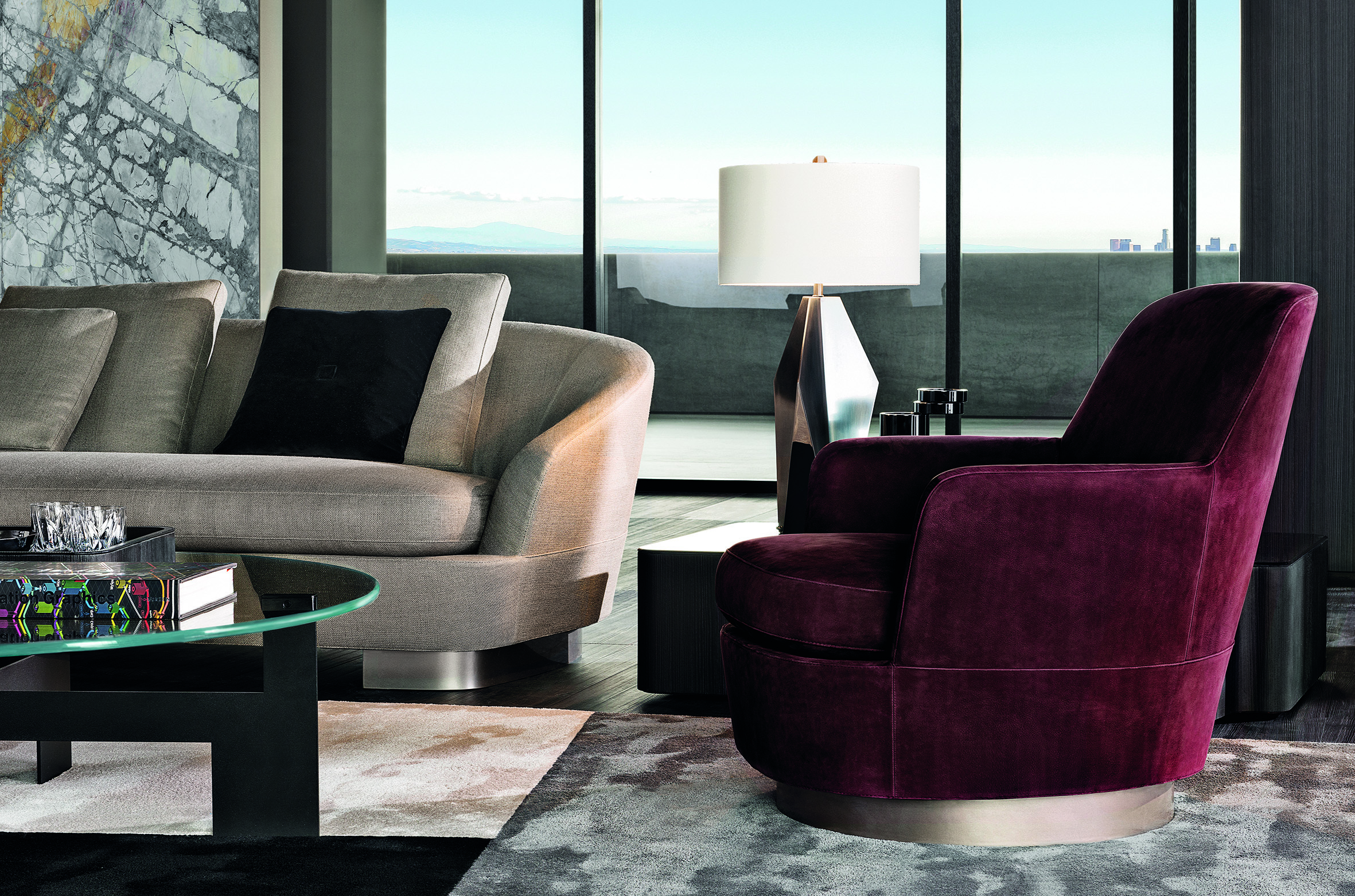 精益求精的缝线展现出Jacques扶手椅和沙发的曲线,圆润的造型与Lawrence沙发严谨的几何造型形成别具一格的对比效果。