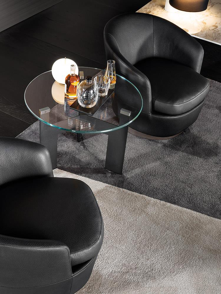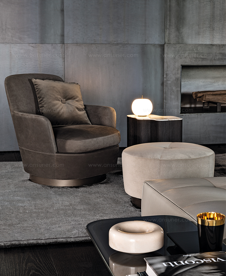 底座可以旋转的Jacques沙发拥有柔软的坐垫和靠背,带来绝佳的舒适感,尤其适合打造休闲放松的空间,可以搭配Song边几和脚凳,达到相得益彰的效果,边几不仅可以用来放置台灯,也可以用来放置各种小物件。