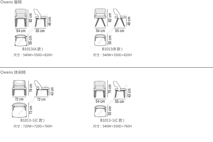 Owens 餐椅 系列尺寸/示意图