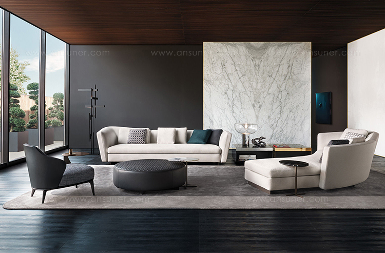 如果说Catlin边柜的设计崇尚简洁,那么材质的选择则旨在打造非凡的视觉和触觉效果。金属基座有着精致的十字形地面支撑腿,其中包括颇有趣味的组合:黑色压花搭配铬色或金色的抛光表面,打造出多种多样的风格。材料的搭配体现出非凡的优雅感,台面可以选择两种珍稀名贵的大理石,Arabescato Purple或Sahara Noir,两者都拥有抛光表面。