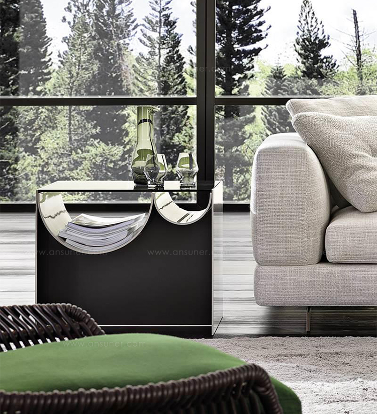 连续的连续的倒置的半圆形使前轮廓蜿蜒而上,适应了空的空间,使使用者能够将杂志、报纸和小物体以平视的方式离开。