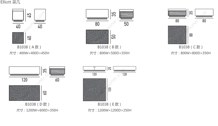 Elliott 茶几 系列尺寸/示意图